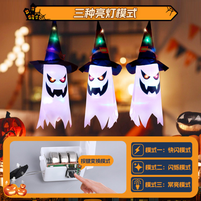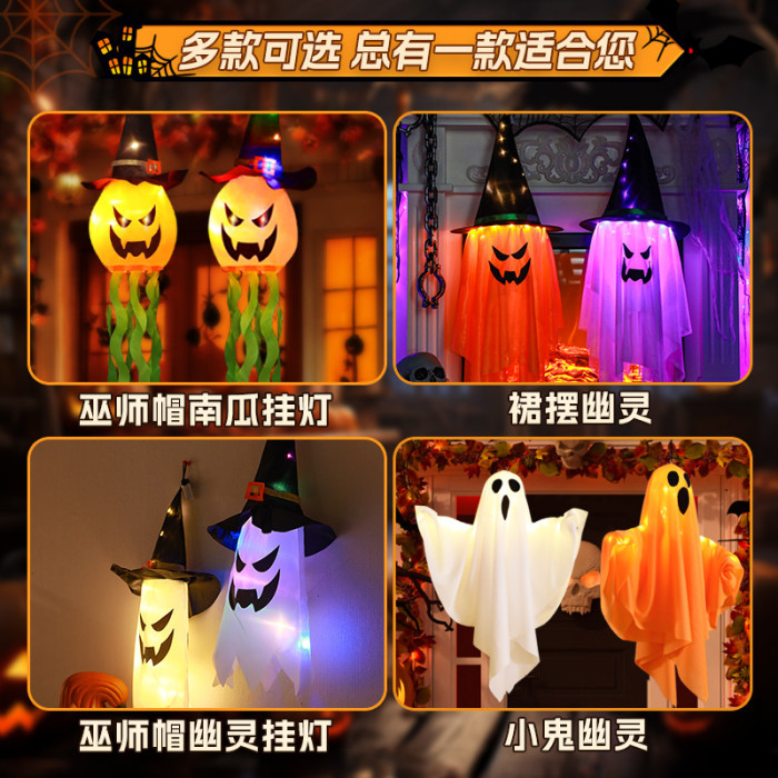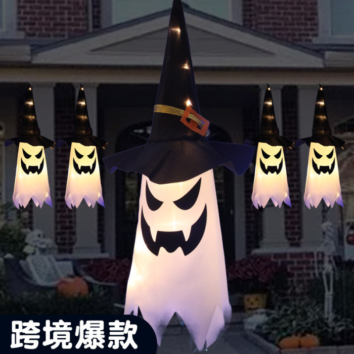 萬聖節巫師帽幽靈led彩燈掛飾鬼節恐怖氛圍戶外庭院裝飾布置掛件