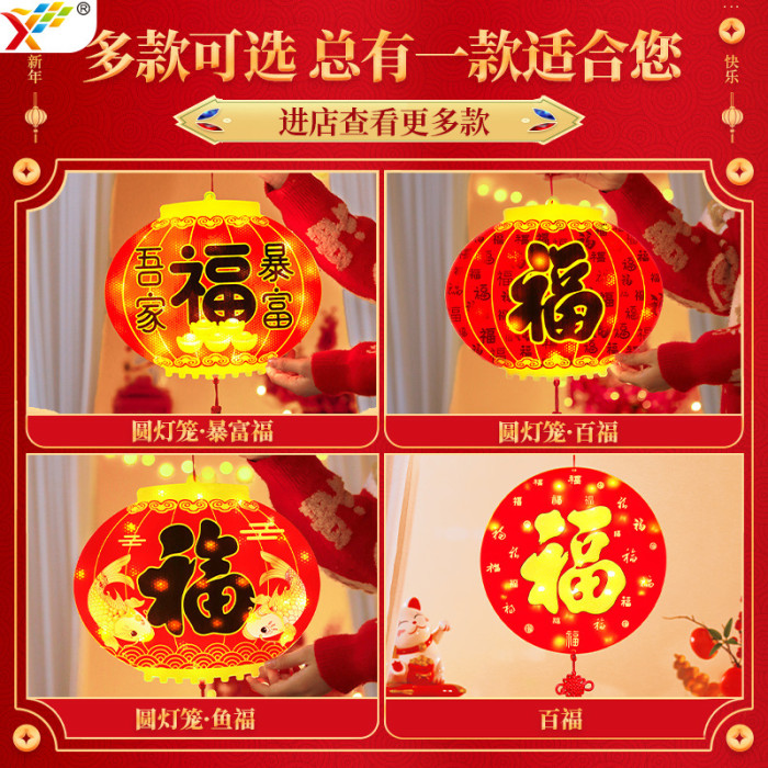 新年發光福字燈籠掛飾2025蛇年春節過年喜慶創意氛圍裝飾布置掛件