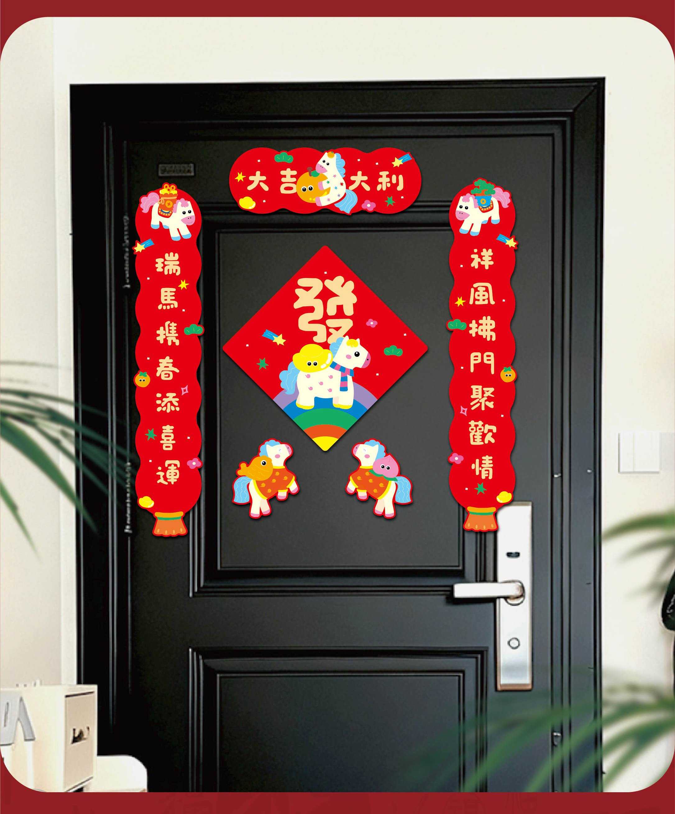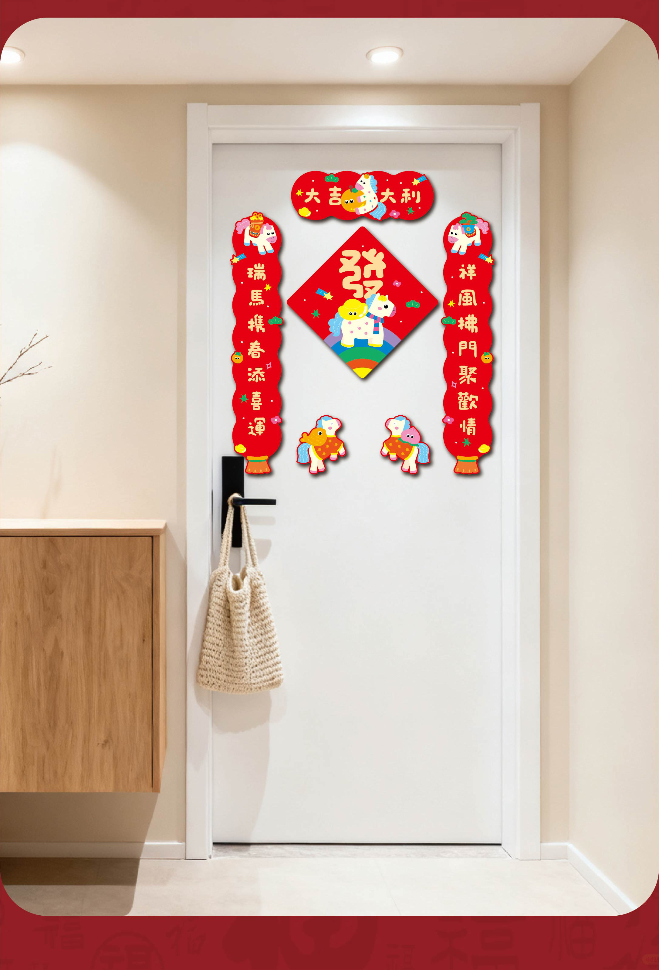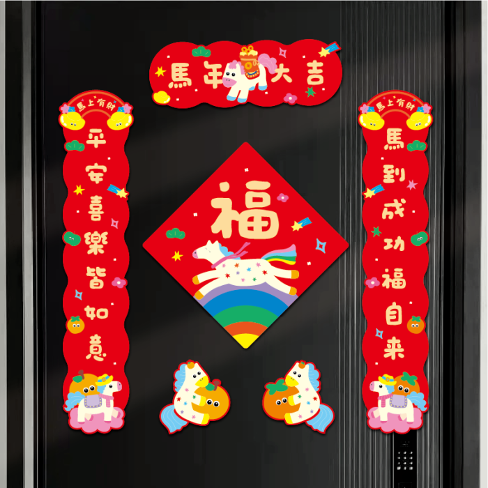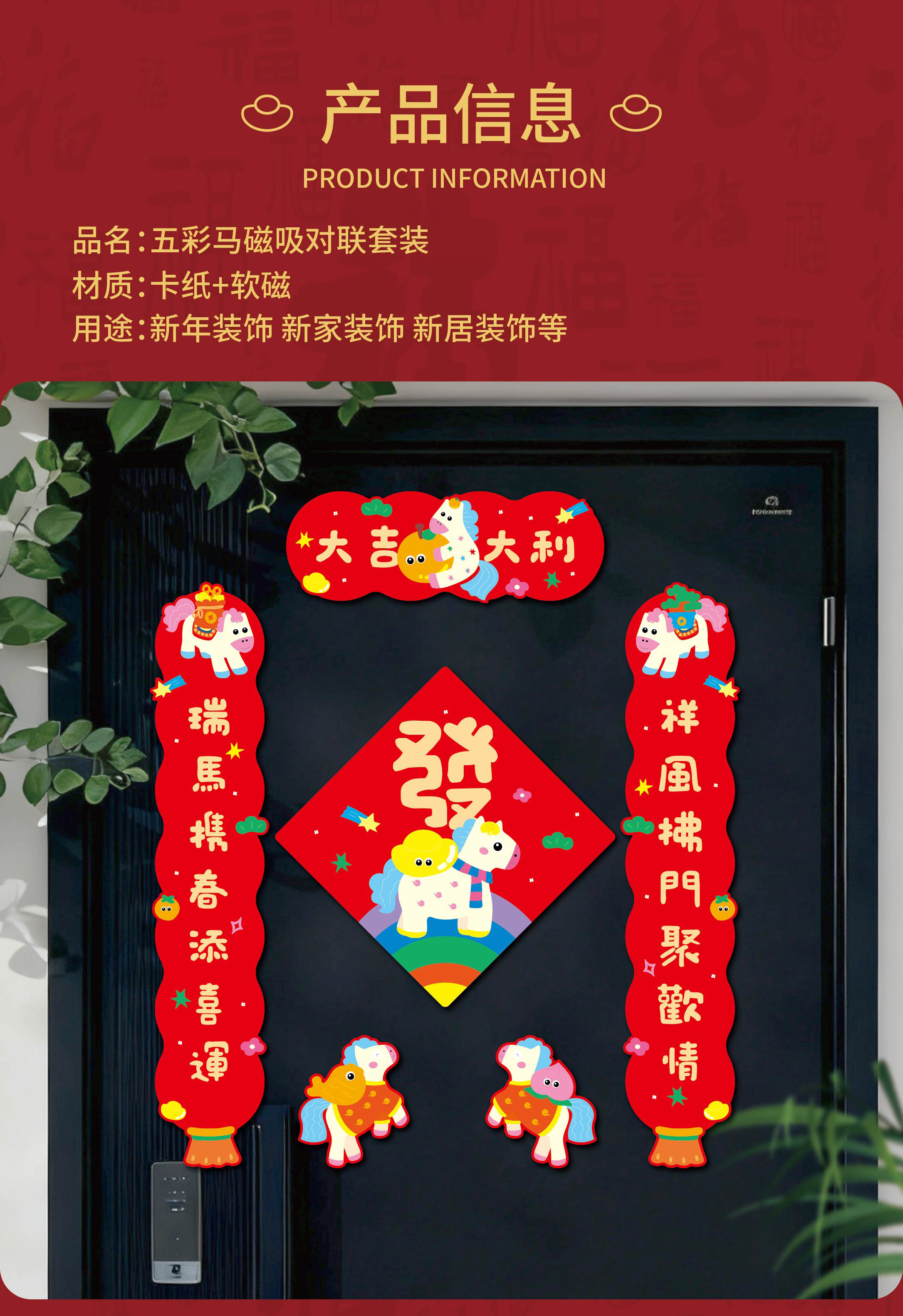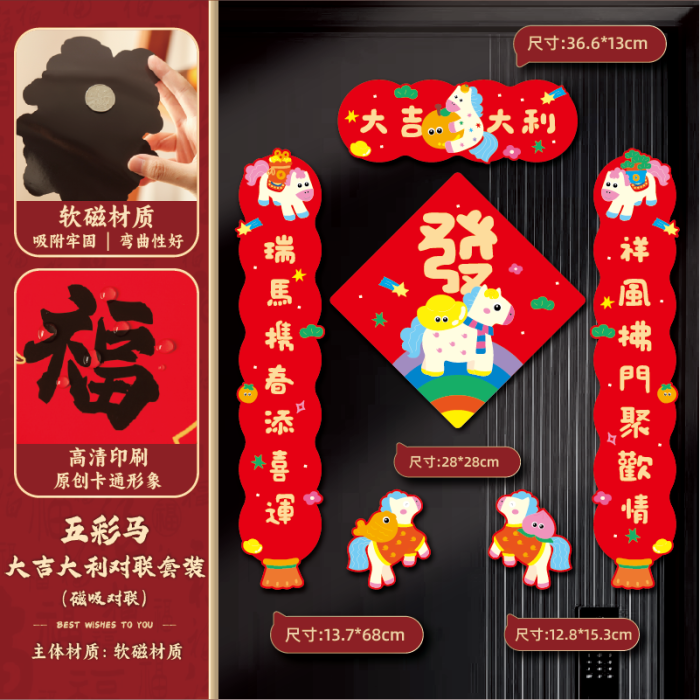 2026馬年新款春節磁吸對聯福字貼過年卡通可愛門貼新年裝飾用品