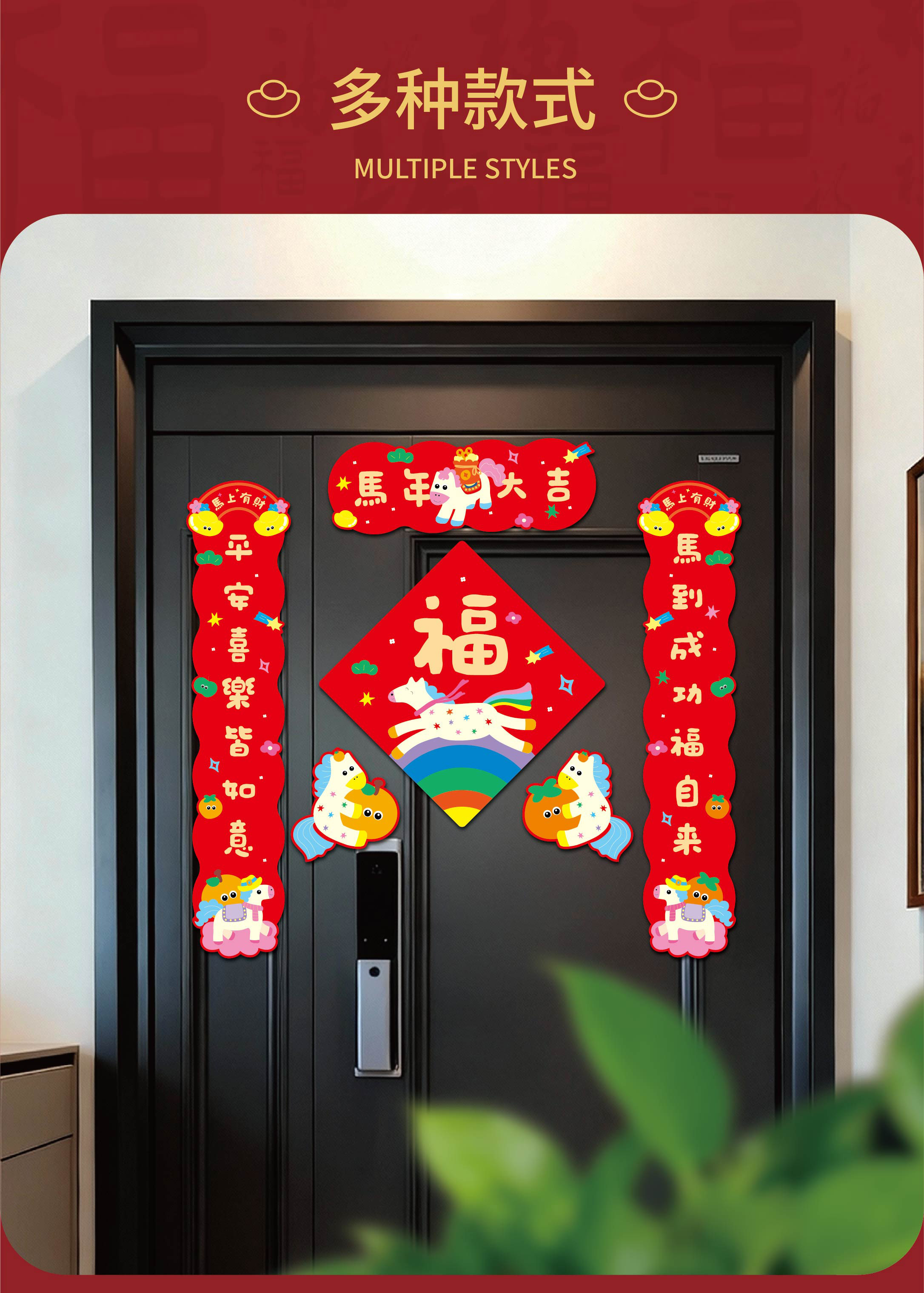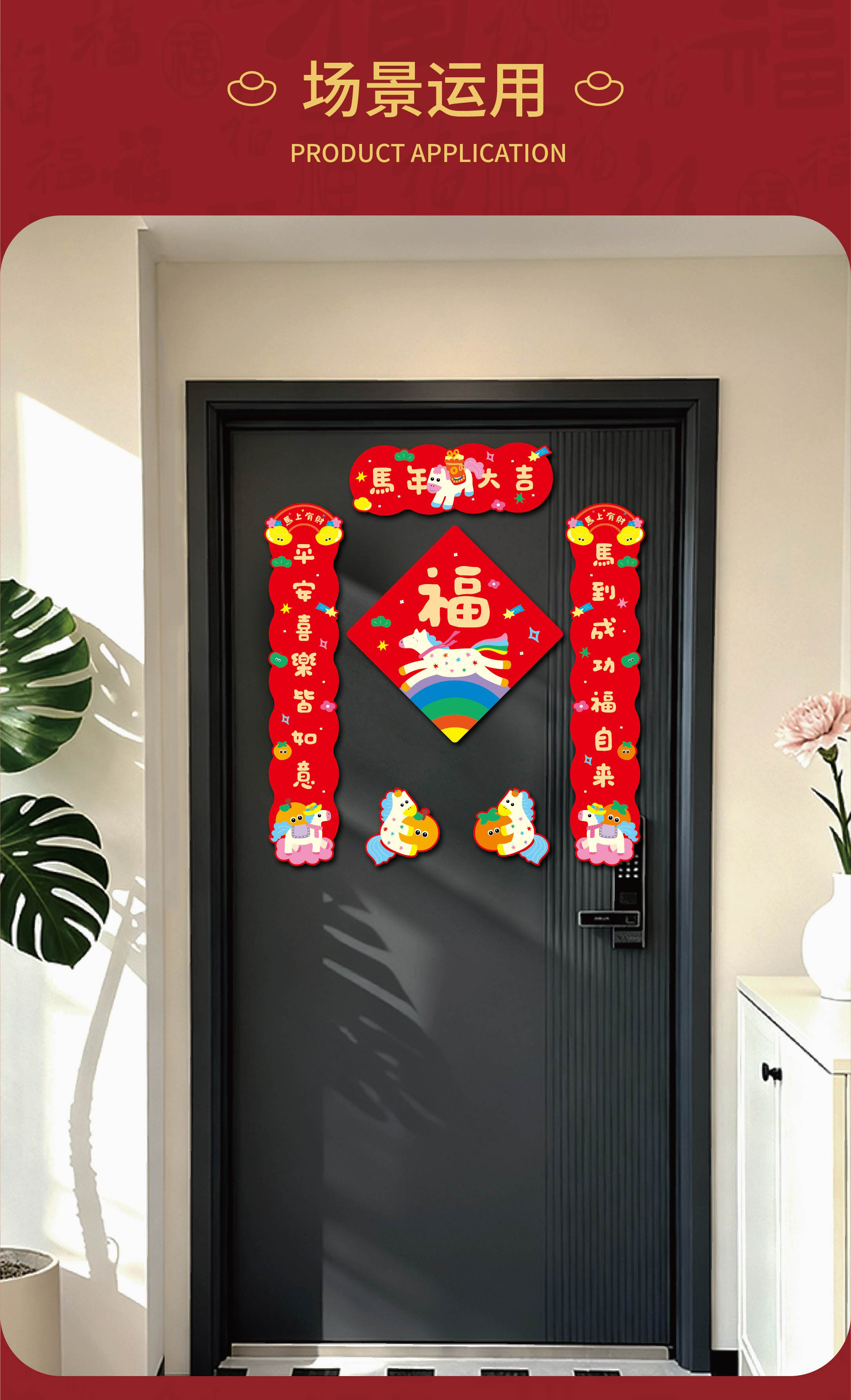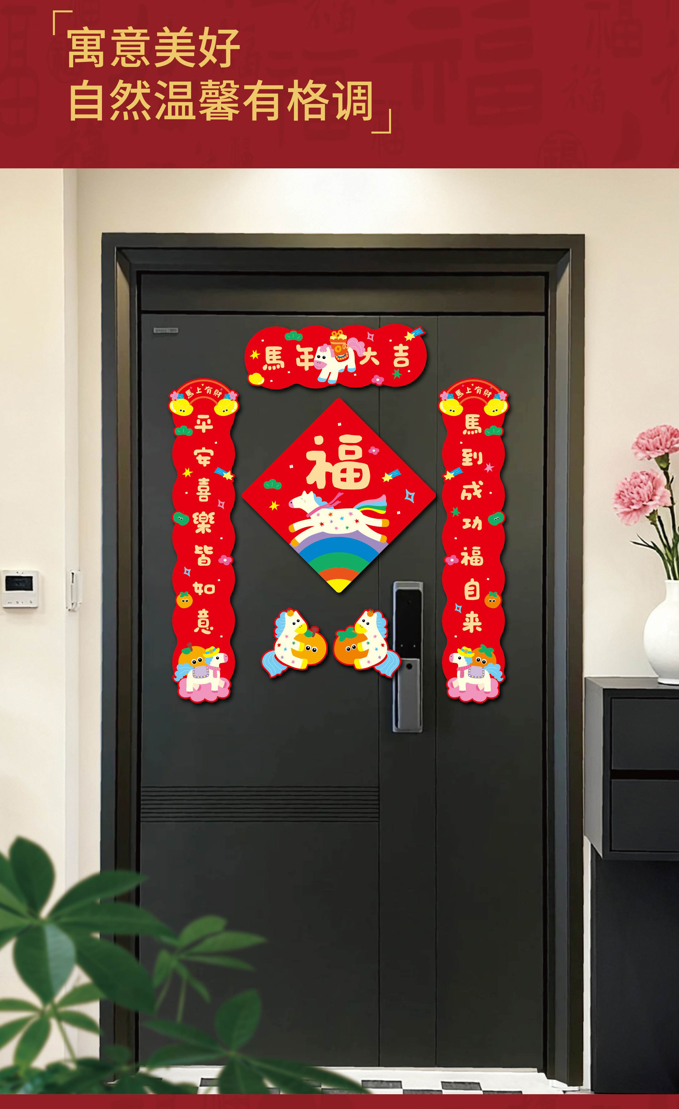 2026馬年新款春節磁吸對聯福字貼過年卡通可愛門貼新年裝飾用品