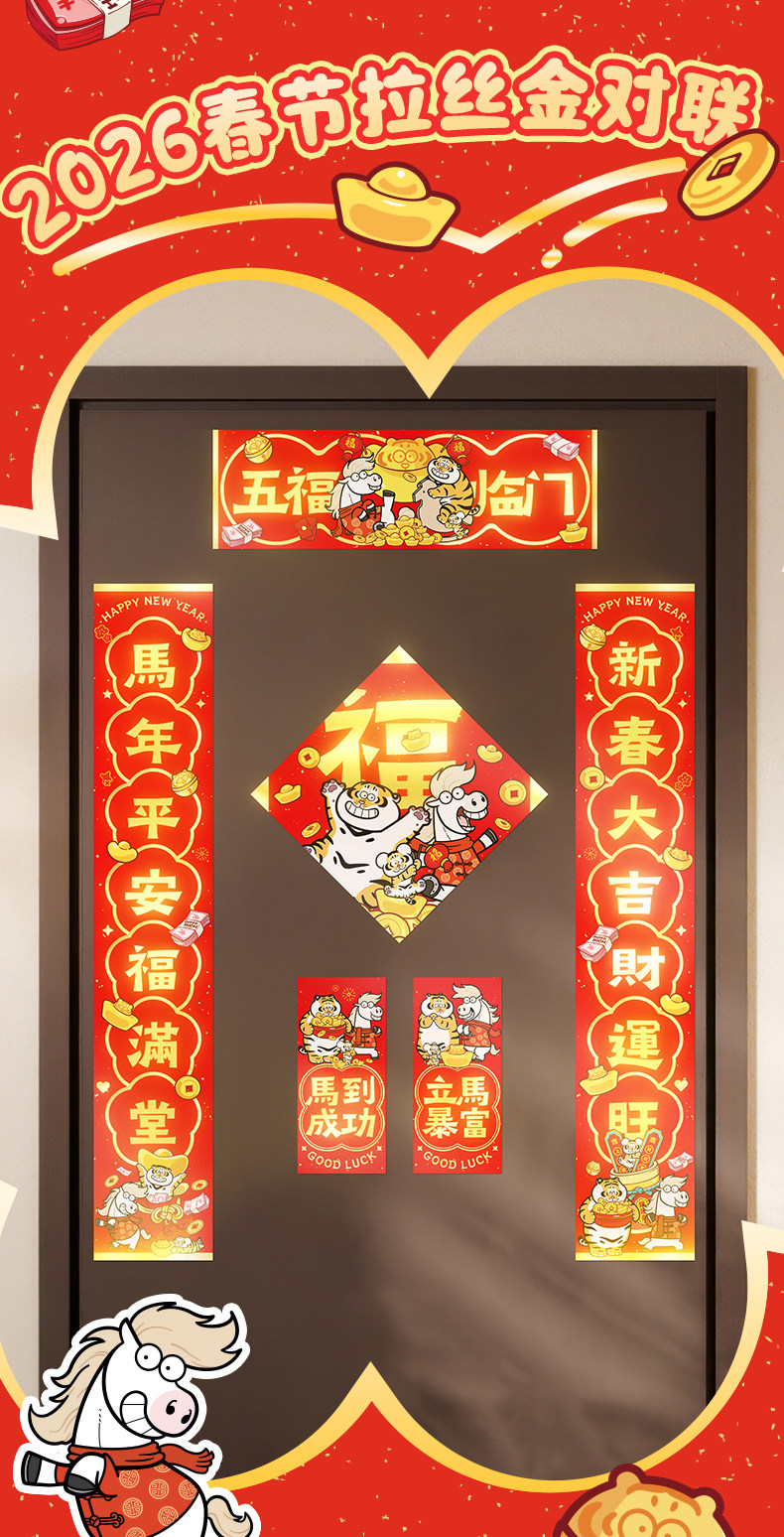 新款2026馬年春節對聯春聯新年裝飾品門貼過年對聯新春氛圍布置畫