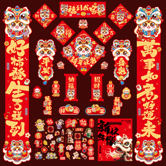 2026新款馬年春節對聯福字禮包卡通家用新大門貼春聯入戶門貼過年