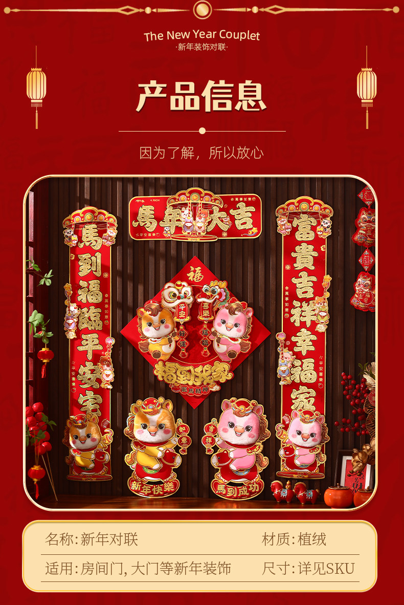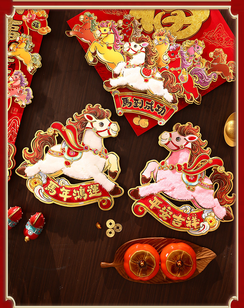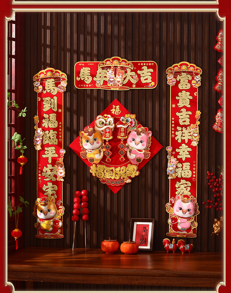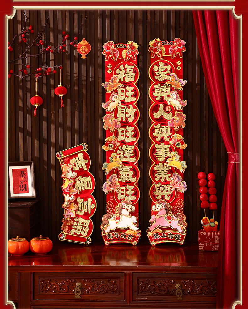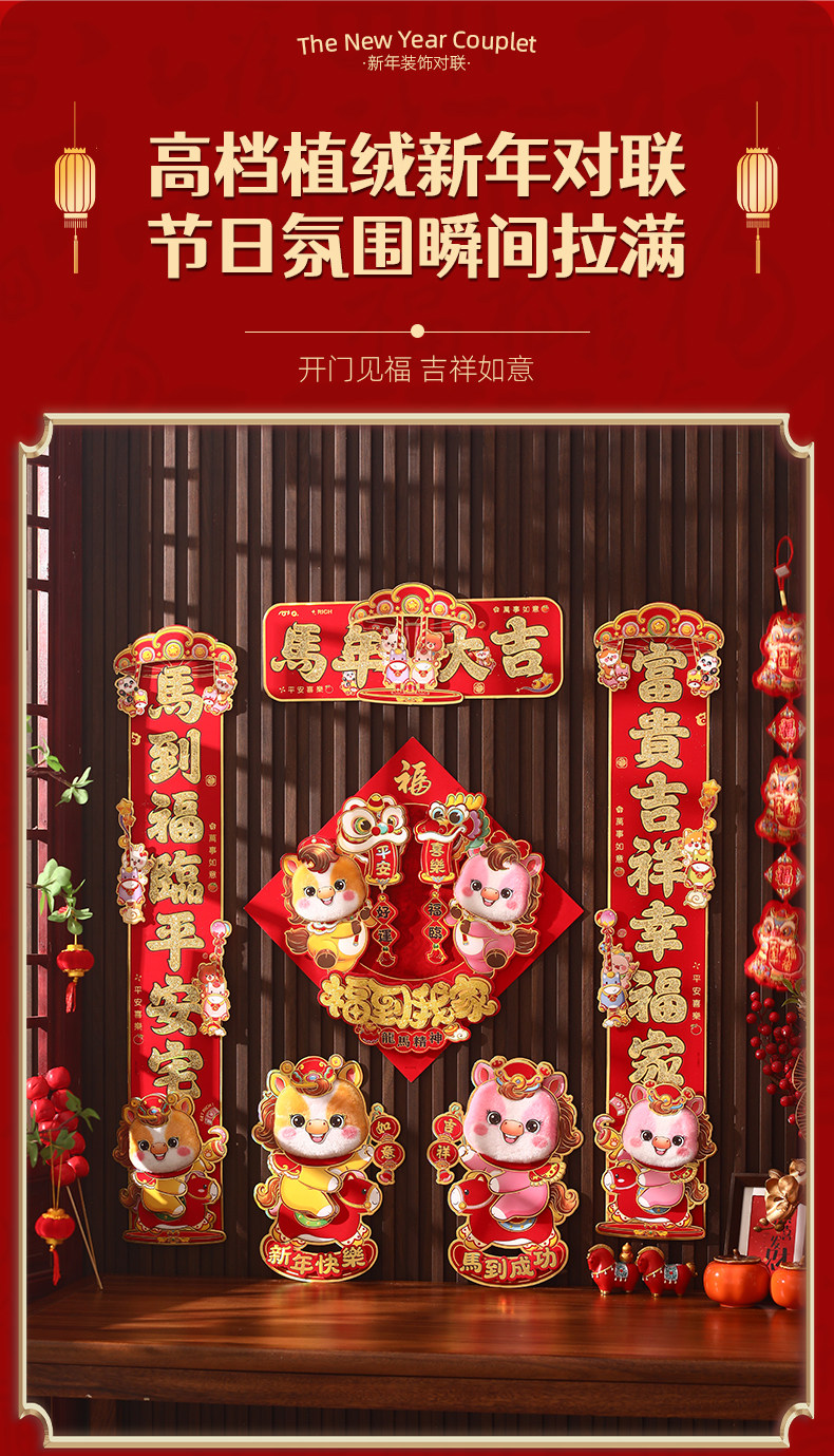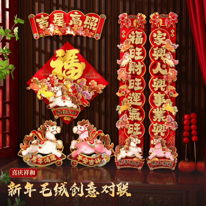 對聯2026馬年生肖新款植絨立體創意新年春節入戶大門毛絨家用春聯