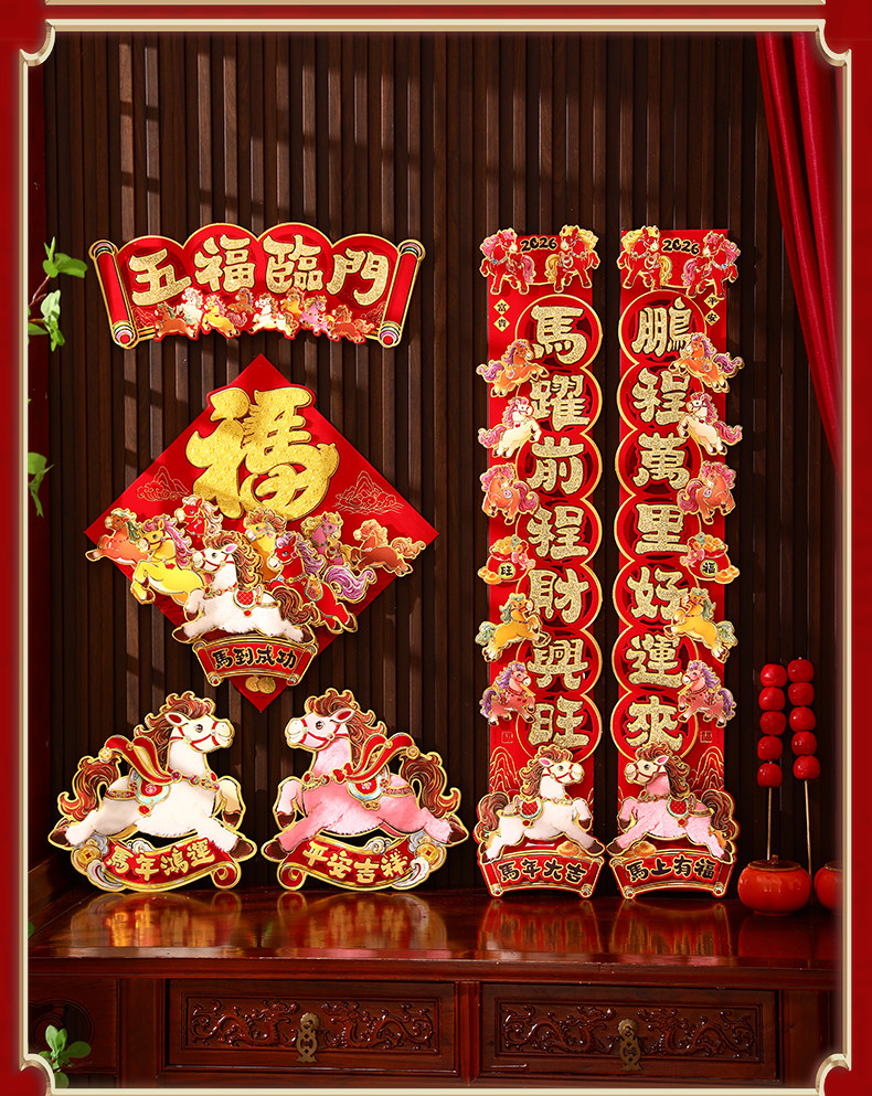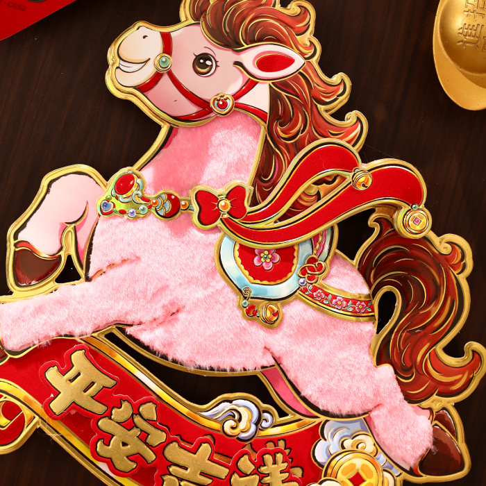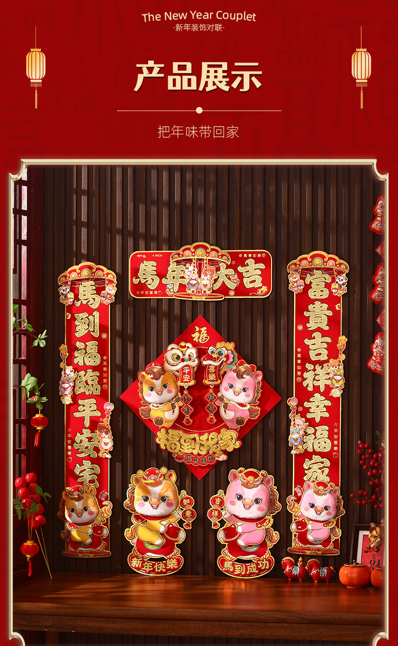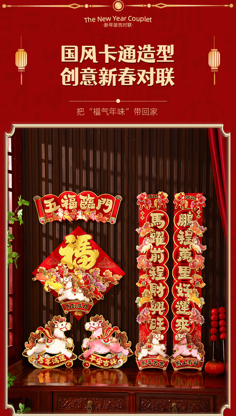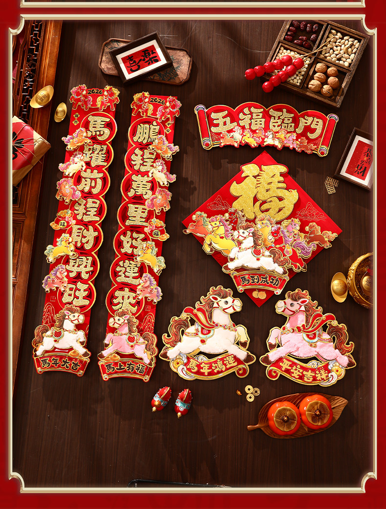 對聯2026馬年生肖新款植絨立體創意新年春節入戶大門毛絨家用春聯