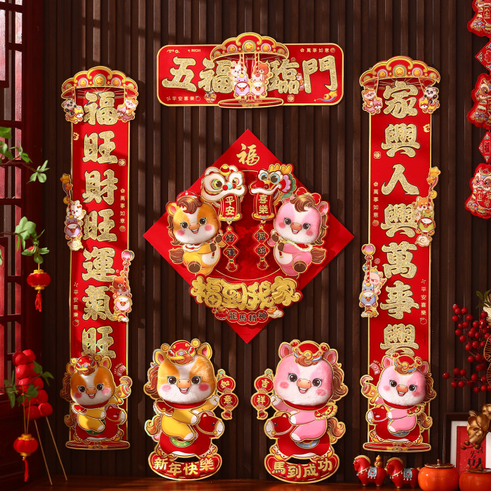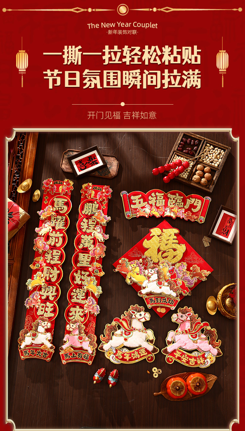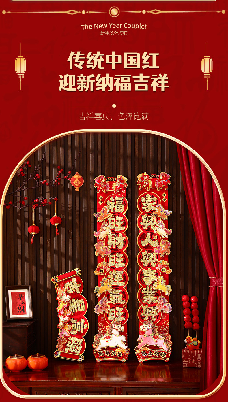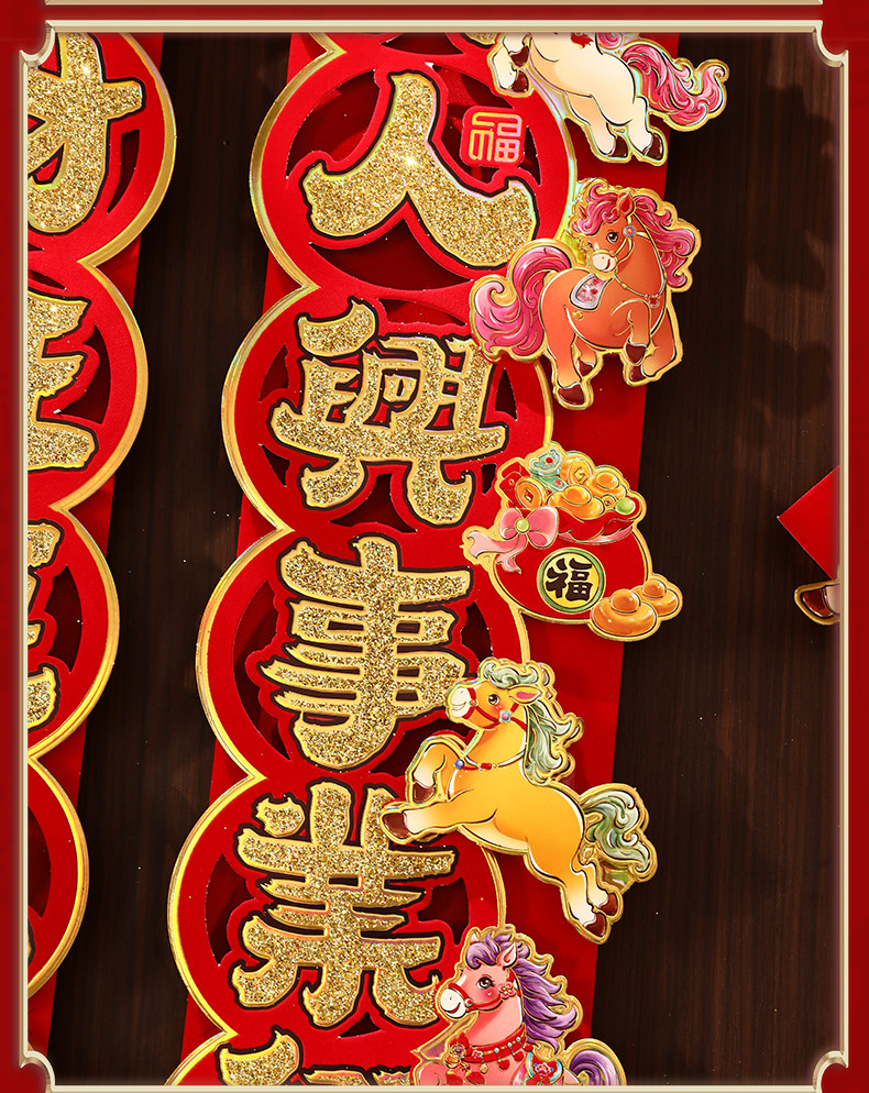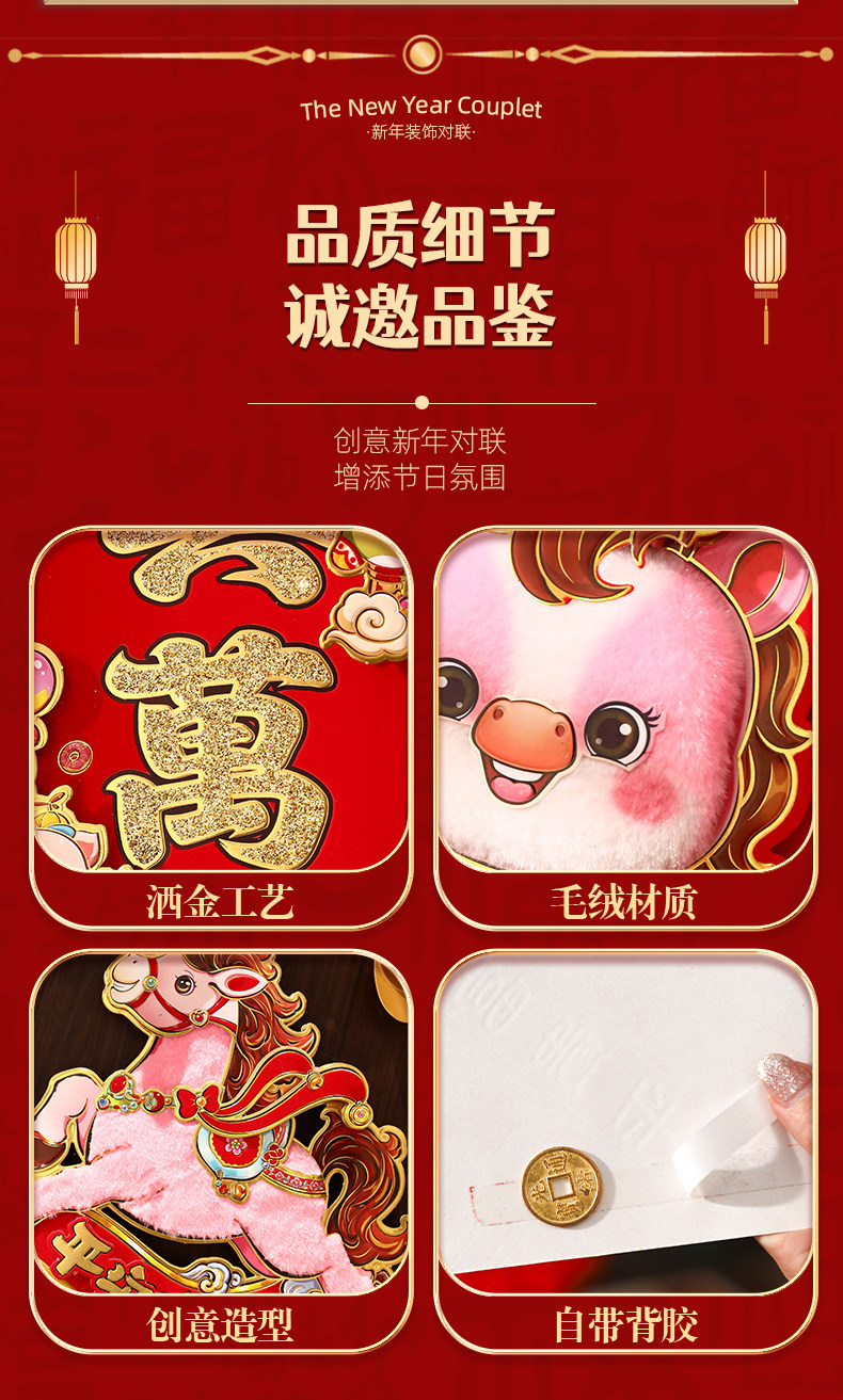 對聯2026馬年生肖新款植絨立體創意新年春節入戶大門毛絨家用春聯