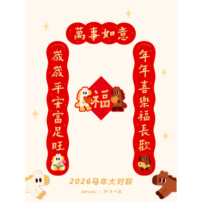 【大對聯1米】爐子小店2026年馬年可愛喜慶書法對聯福原創對聯1