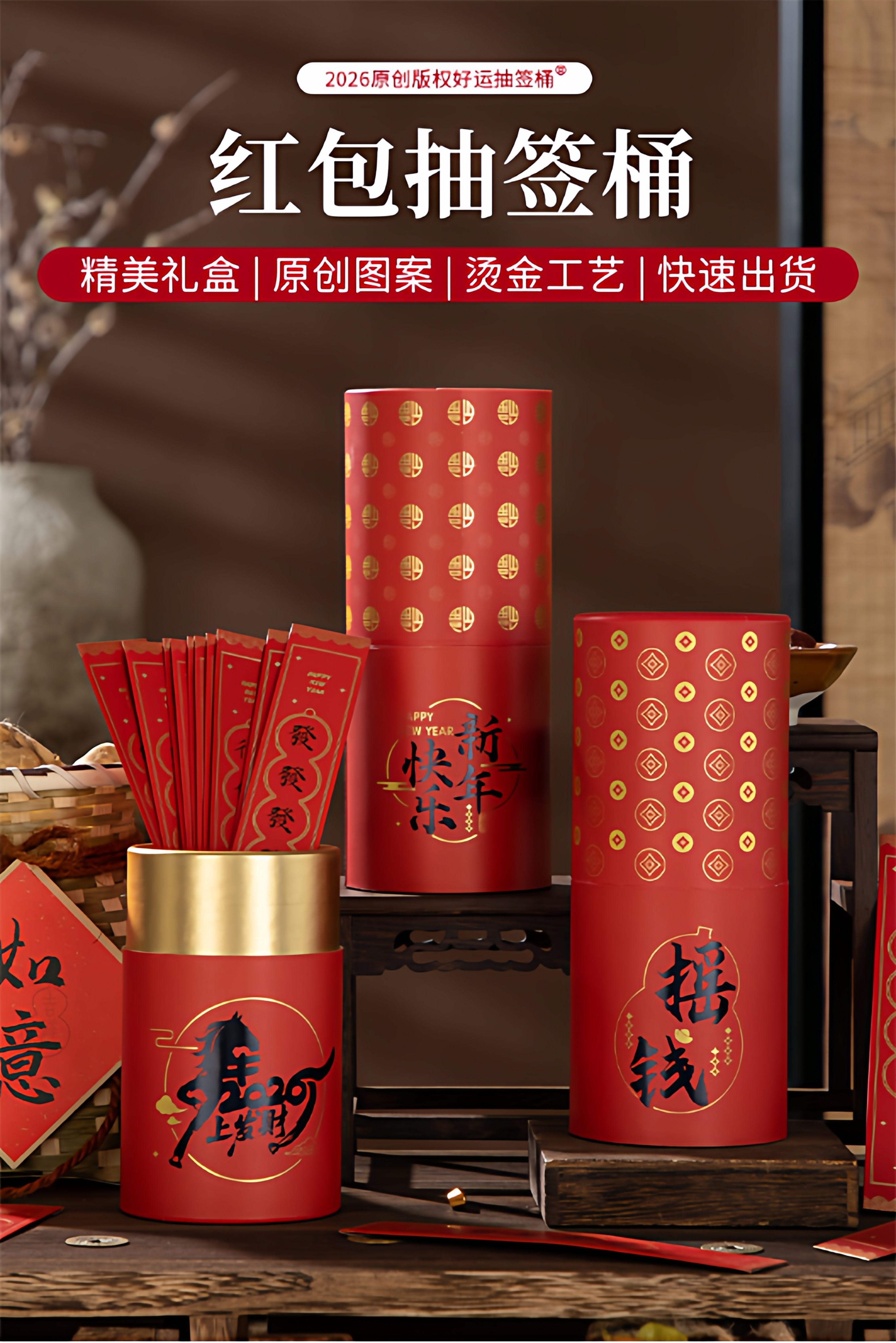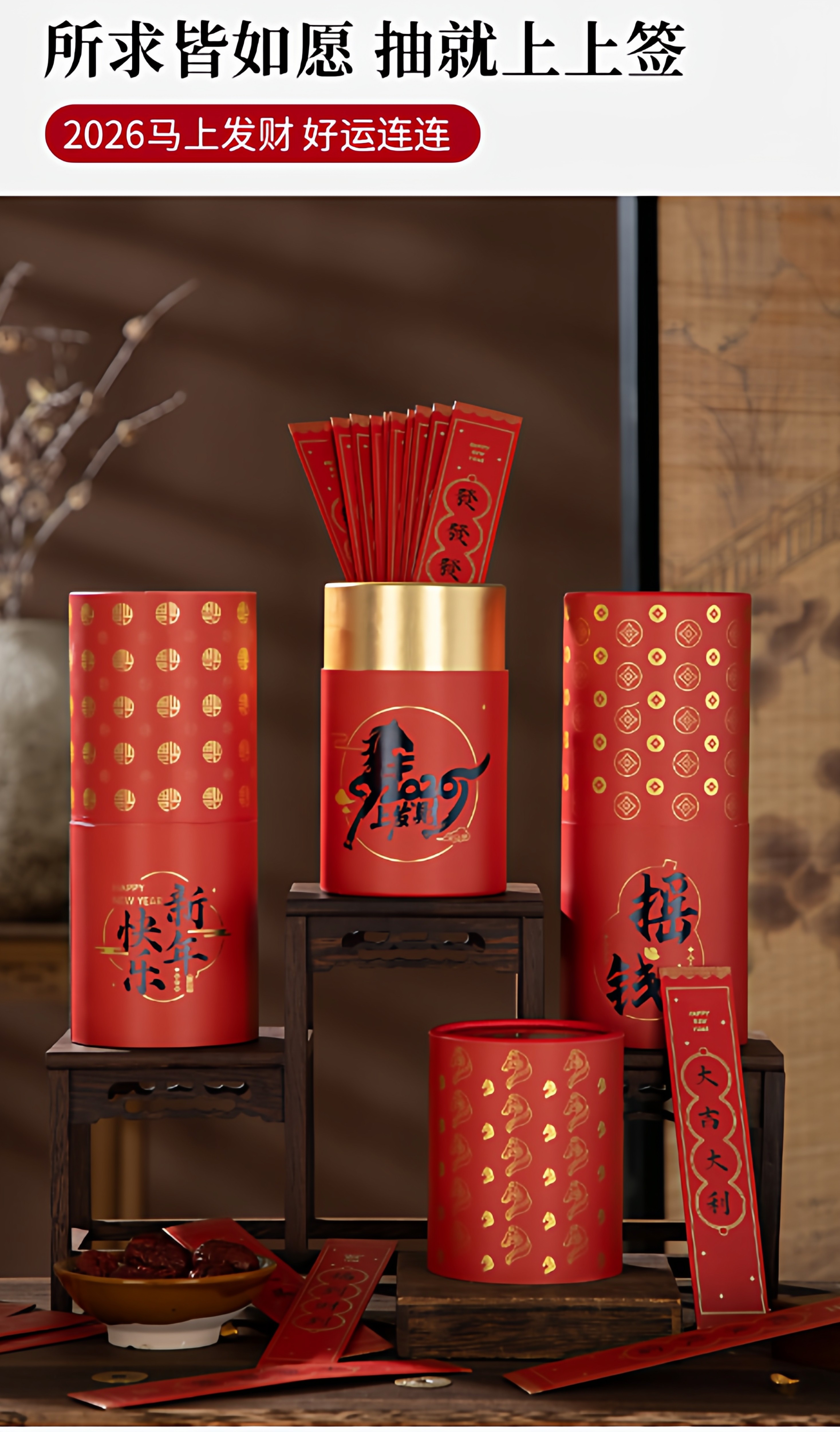 馬年創意抽簽紅包2026年會抽獎活動道具上上抽簽桶紙條馬年利是封