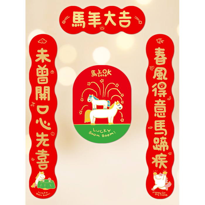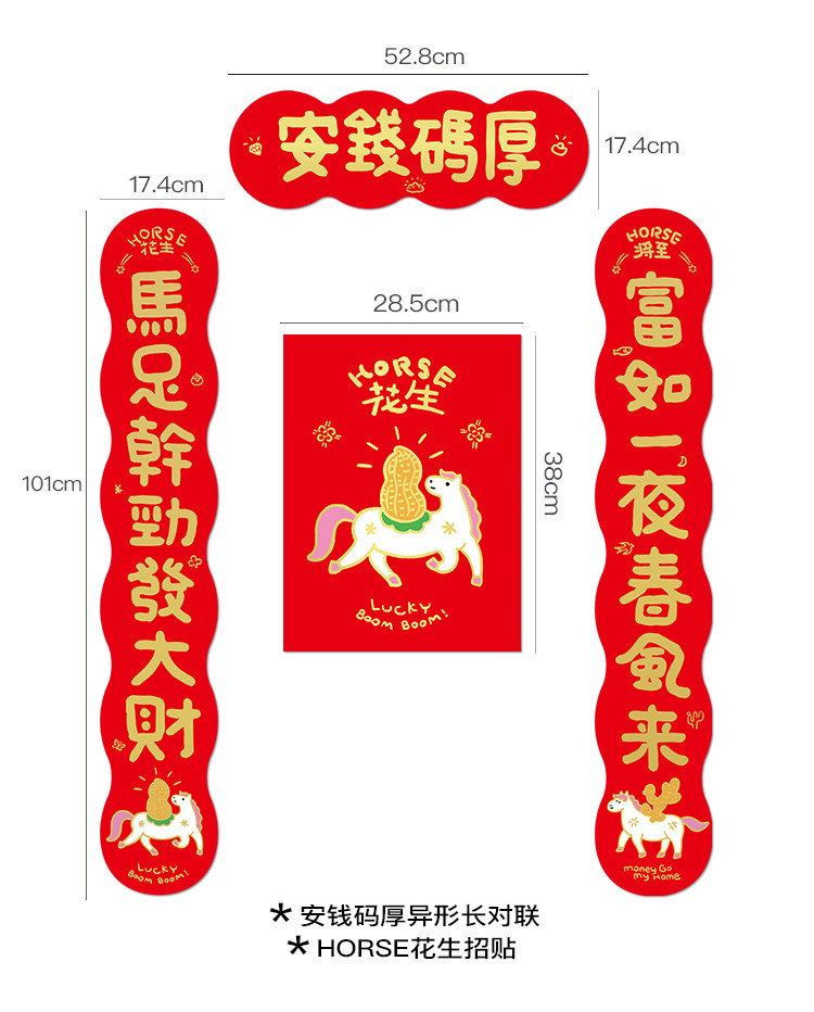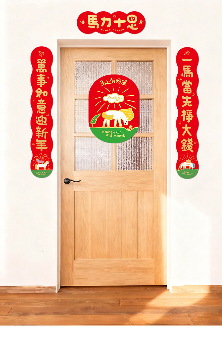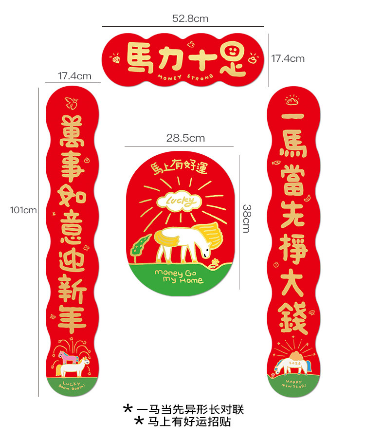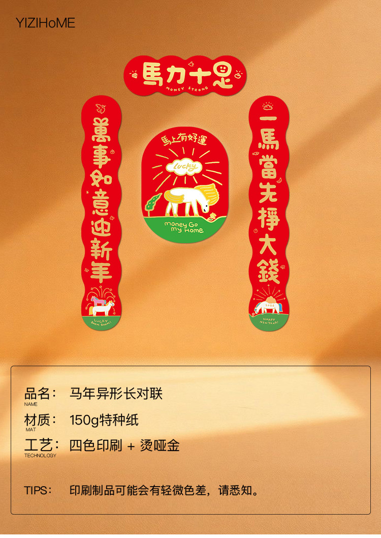 yizihome2026馬年諧音梗創意長款對聯異形燙金春節入戶門春聯