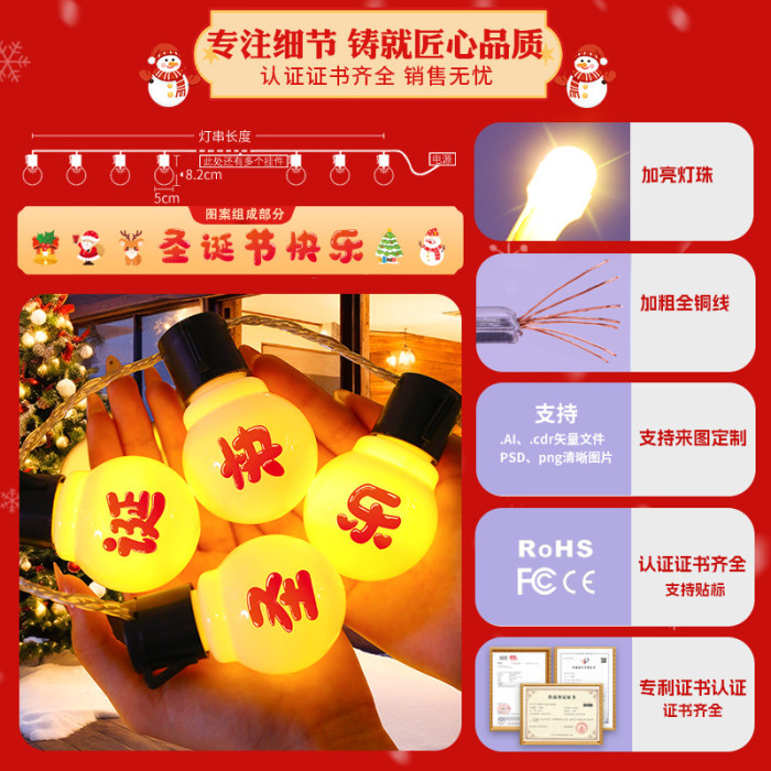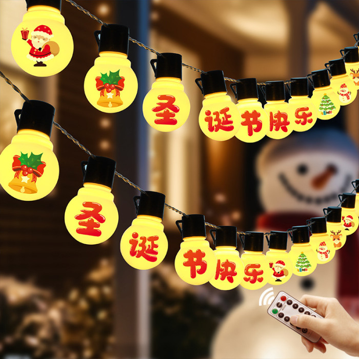 發光聖誕節快樂燈串christmas節日派對氛圍布置裝飾掛件用品