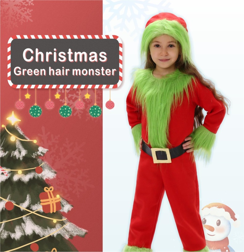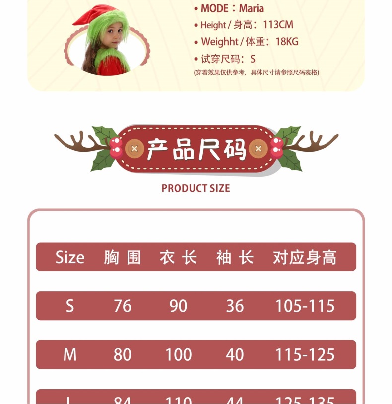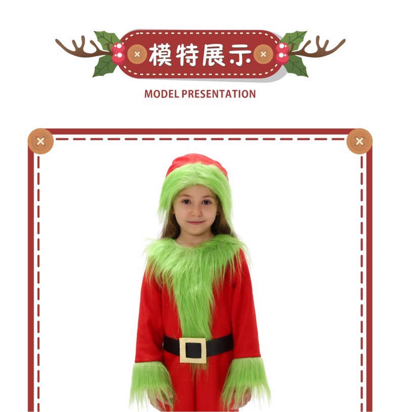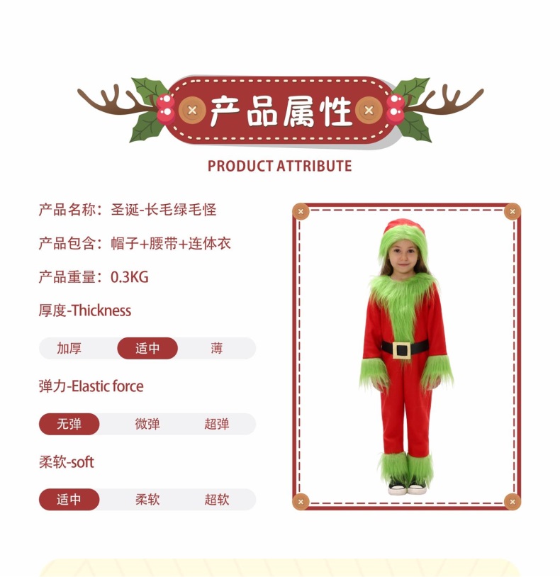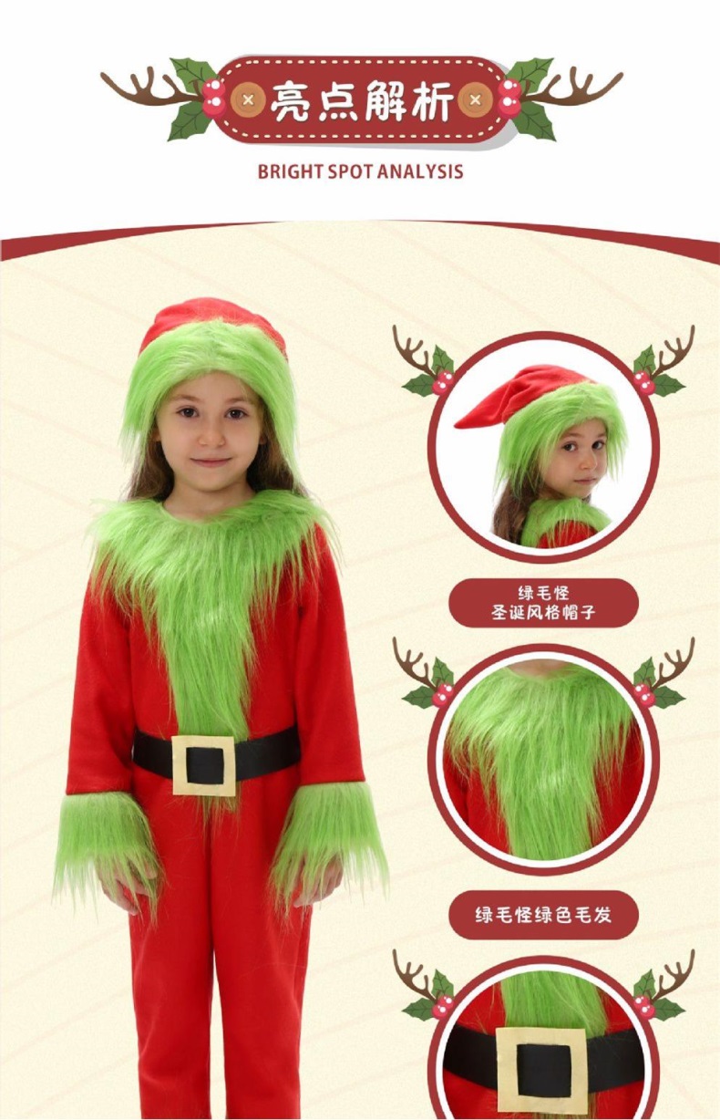 聖誕節服裝 聖誕綠毛怪cos兒童演出服聖誕裝扮派對校園節日表演服