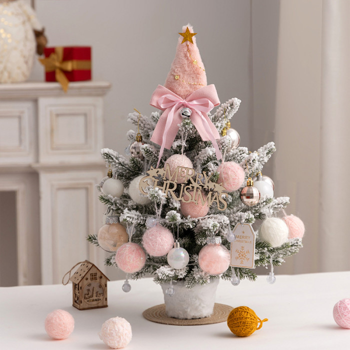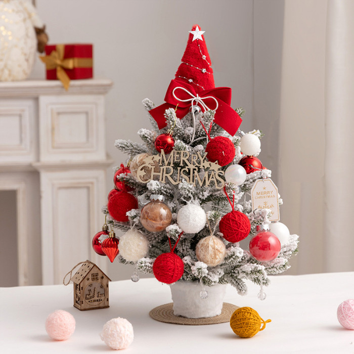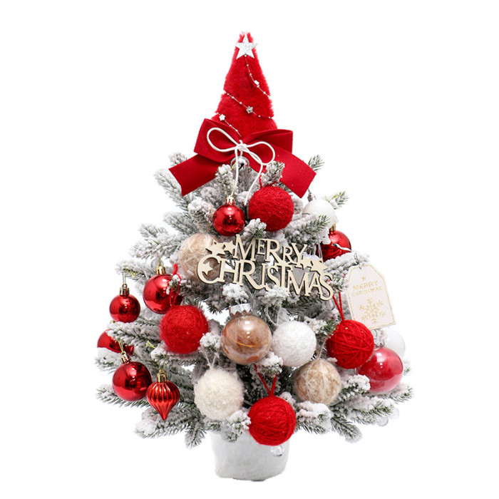 聖誕樹新款pe迷你桌面聖誕樹植絨落雪帶燈聖誕裝飾誕節diy材料包