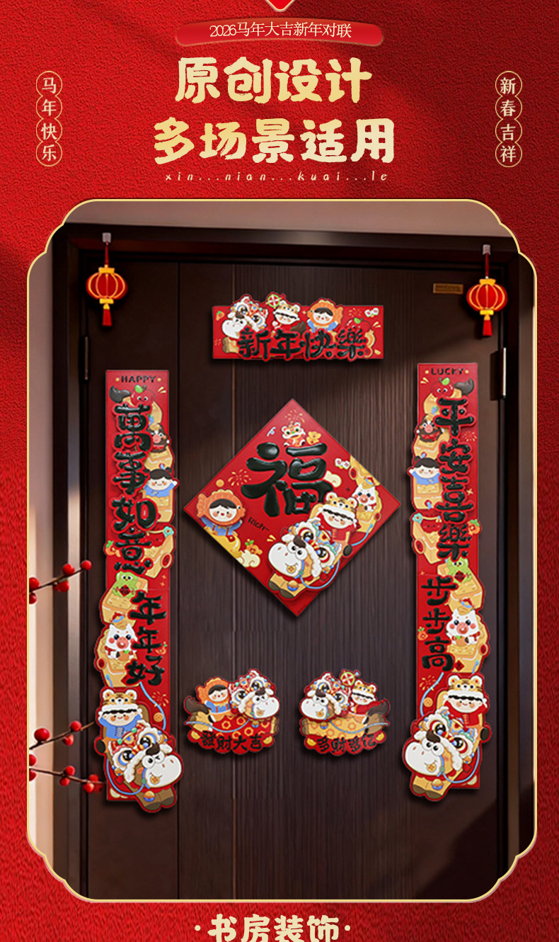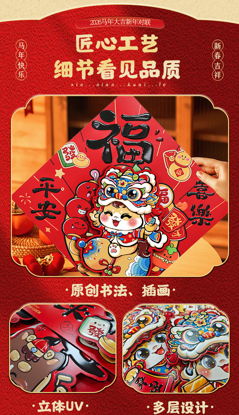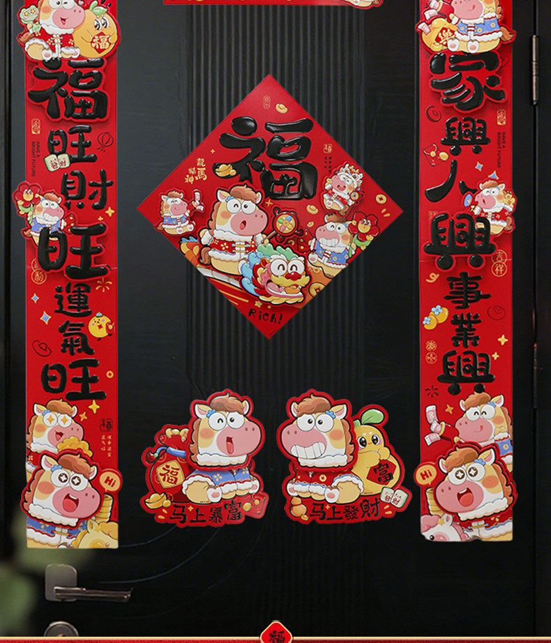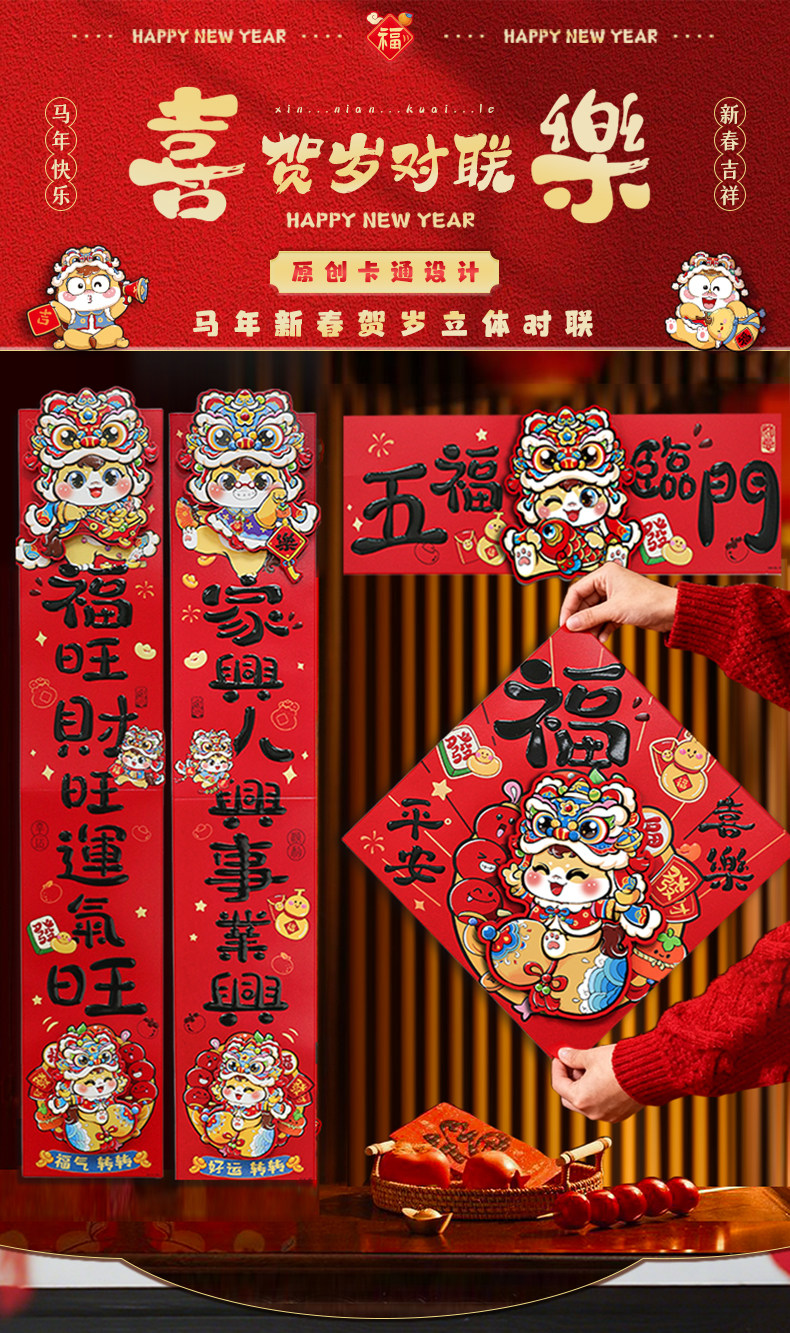 2026馬年新款新年卡通雙層立體對聯春節裝飾貼紙加厚卡紙創意春聯