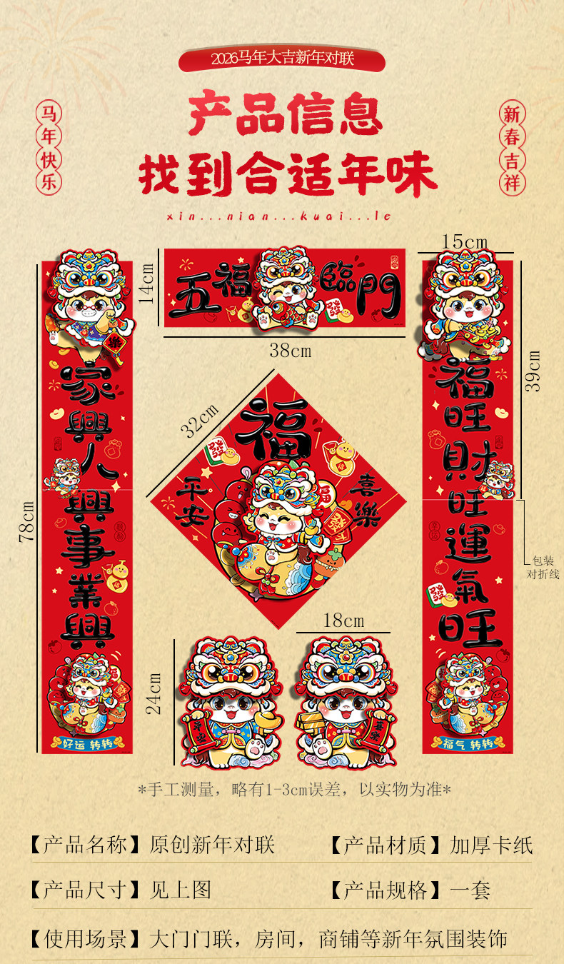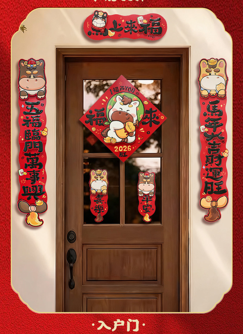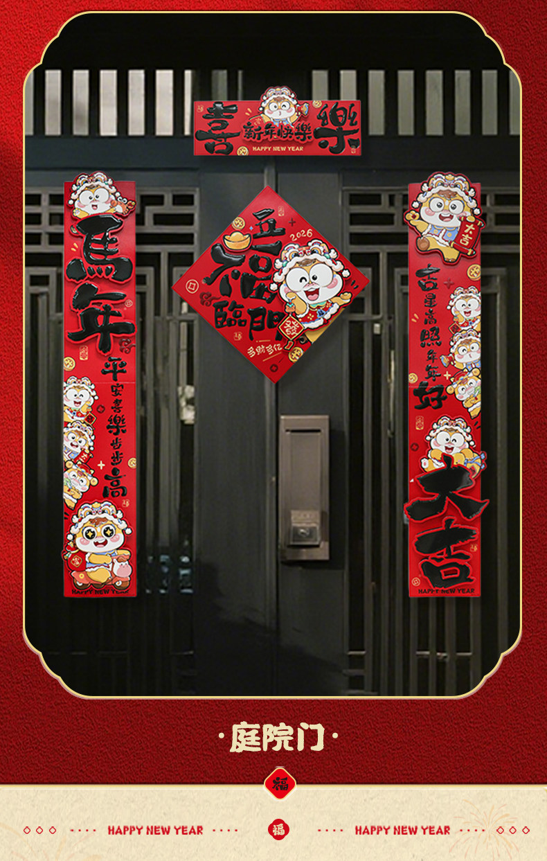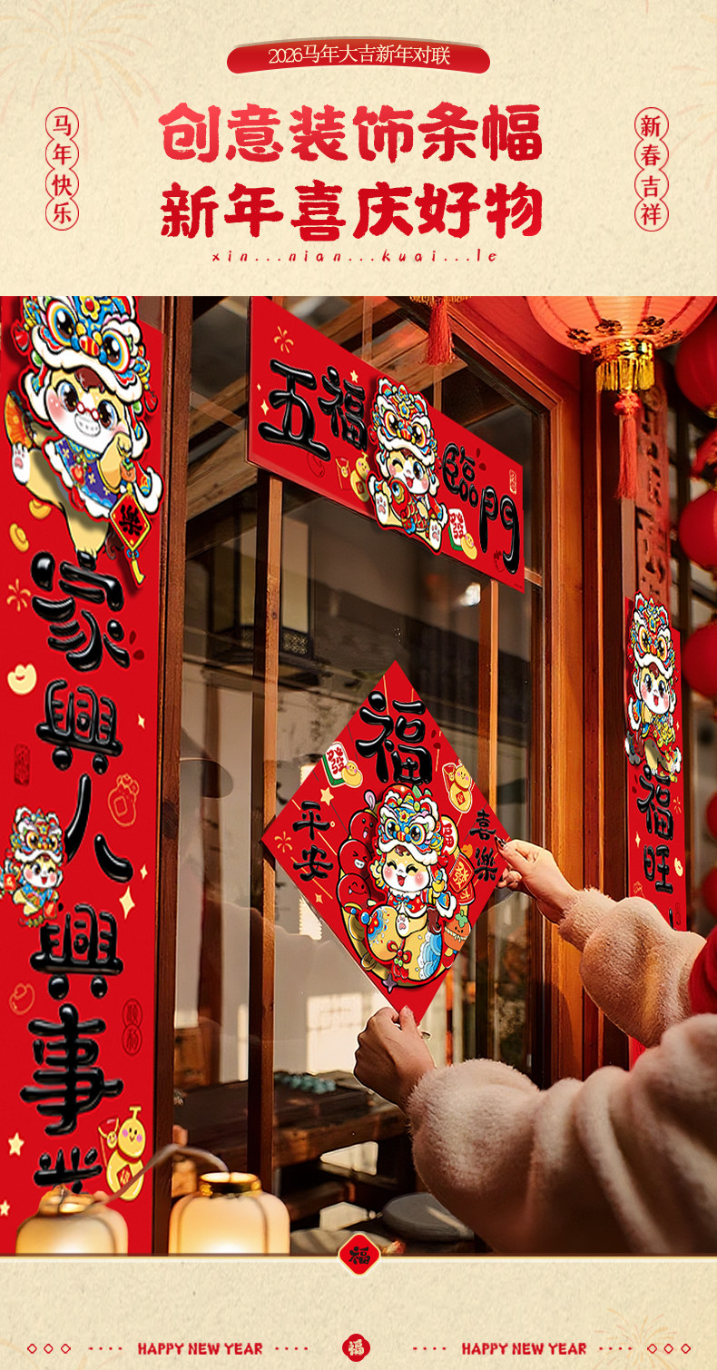 2026馬年新款新年卡通雙層立體對聯春節裝飾貼紙加厚卡紙創意春聯