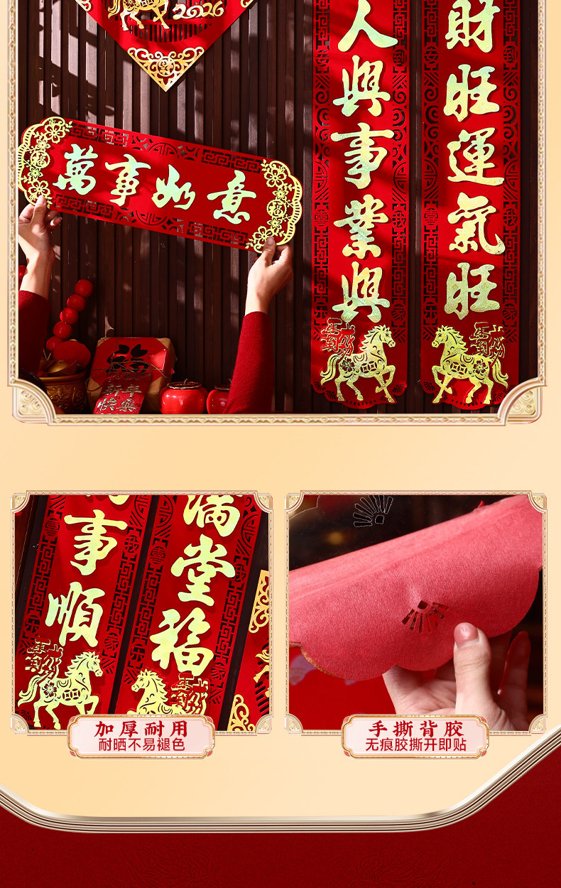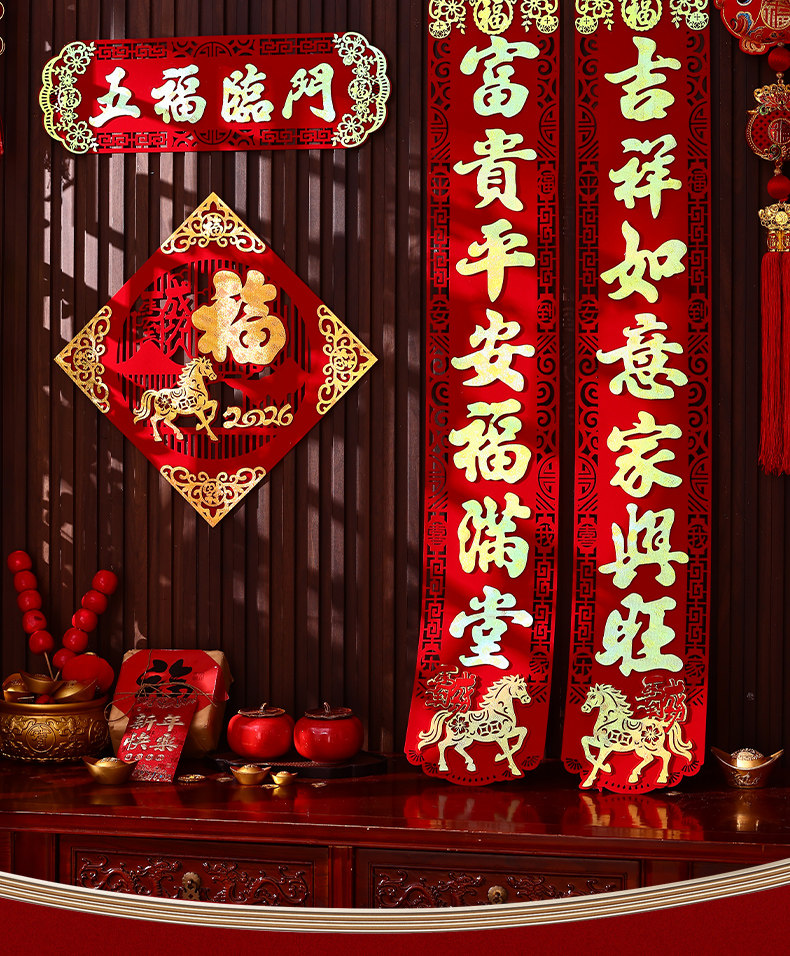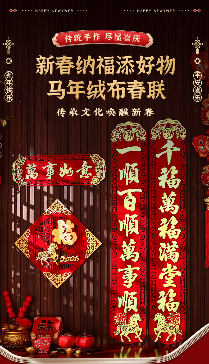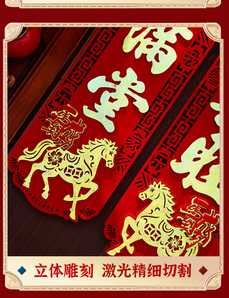 馬年家用入戶門對聯2026年新款春節新年高級絨布背膠大門春聯門聯