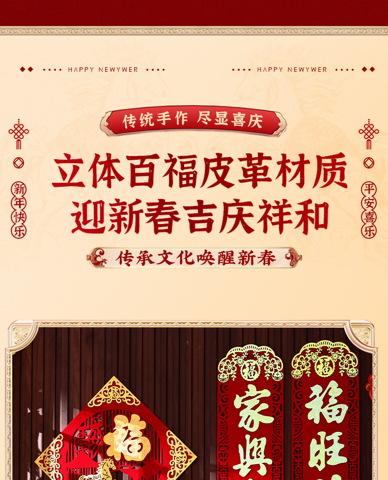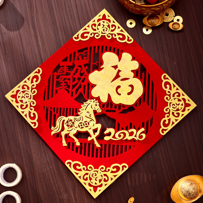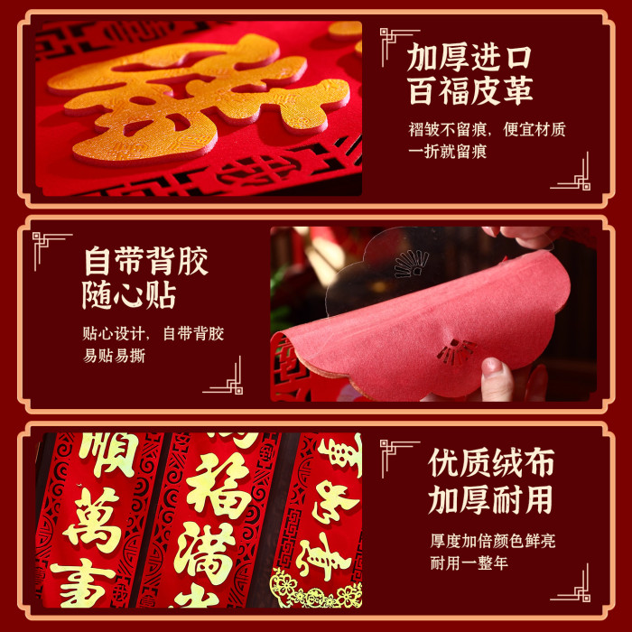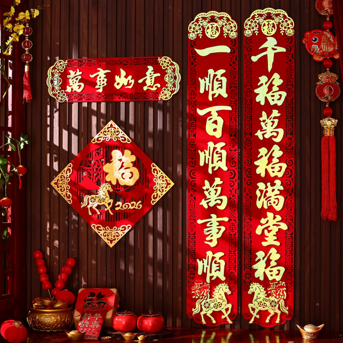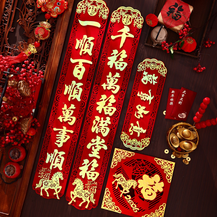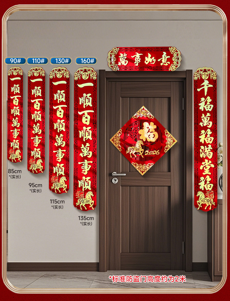 馬年家用入戶門對聯2026年新款春節新年高級絨布背膠大門春聯門聯