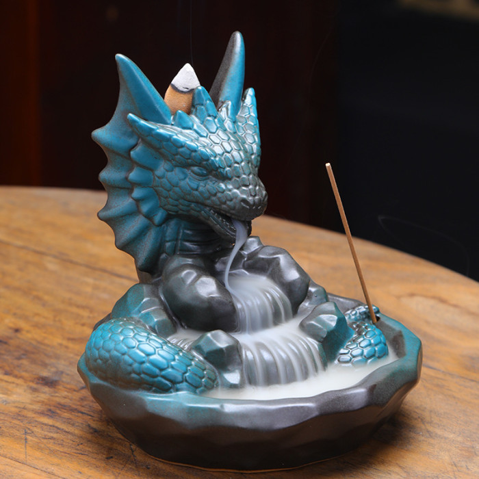 蛟龍倒流香擺件-窰變+20粒香墊子鑷子線香