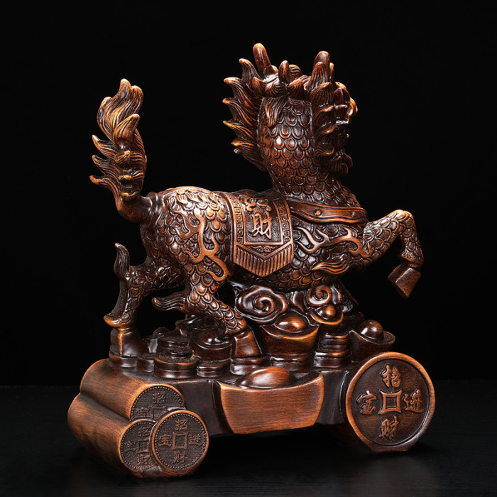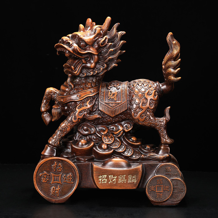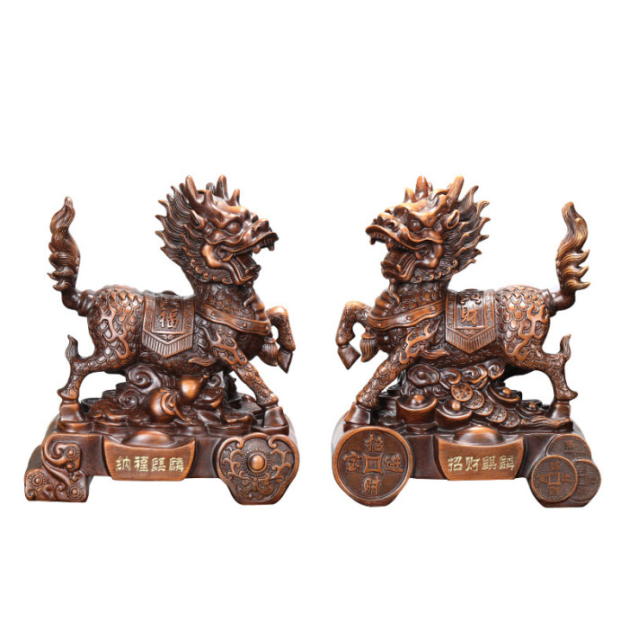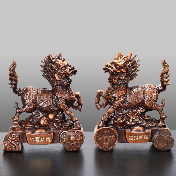 中式麒麟對樹脂工藝品家居裝飾品玄關開業喬遷禮物鎮宅擺件