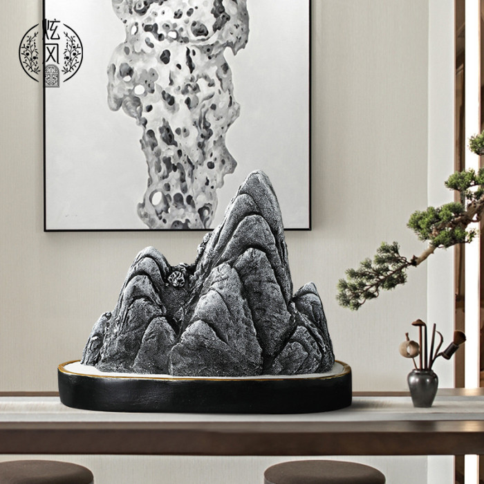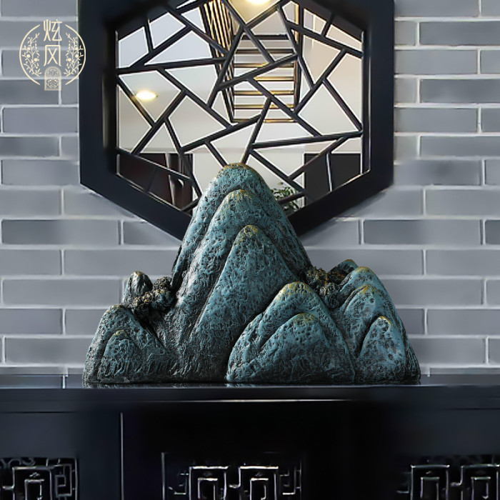 創意樹脂假山工藝品擺件 中式玄關客廳酒櫃辦公室桌面擺設