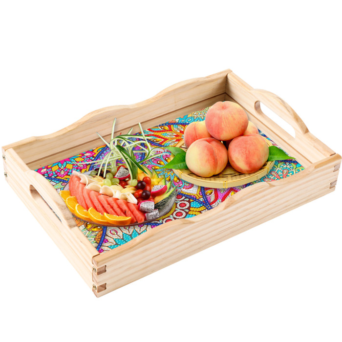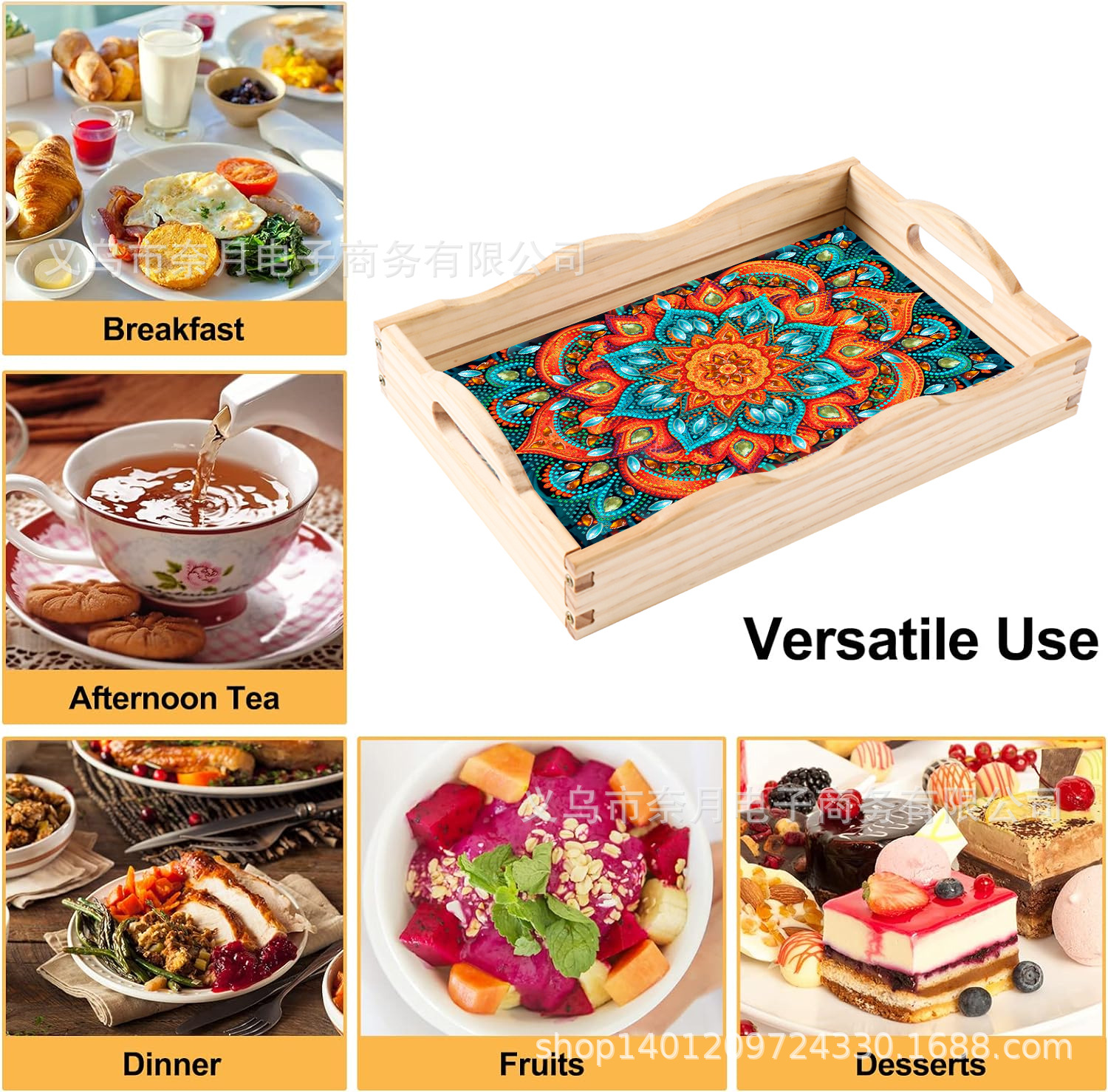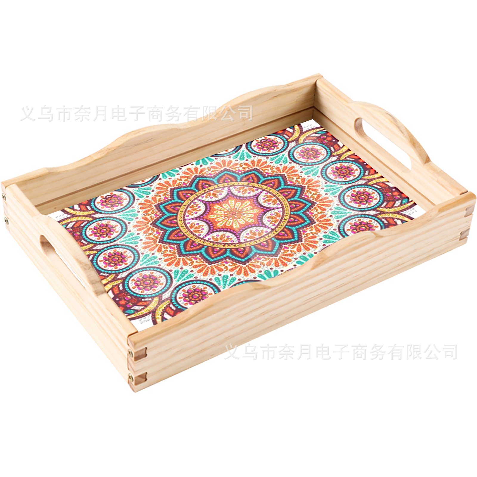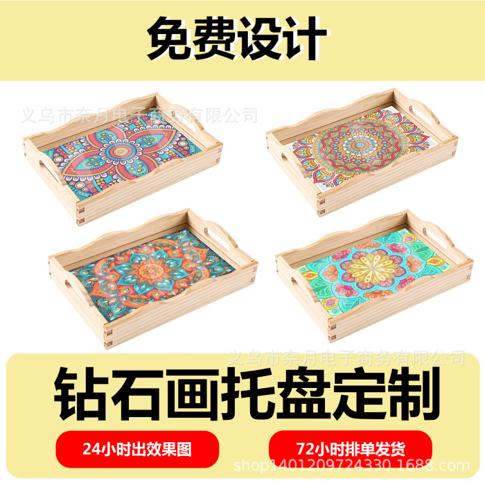 木質托盤新品鑽石畫曼陀羅花型DIY手工餐盤貼鑽綉餐盤甜