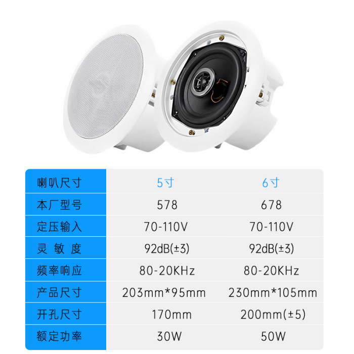 定壓吸頂喇叭 30W公共廣播同軸帶後蓋後罩音箱 定壓吸頂喇叭