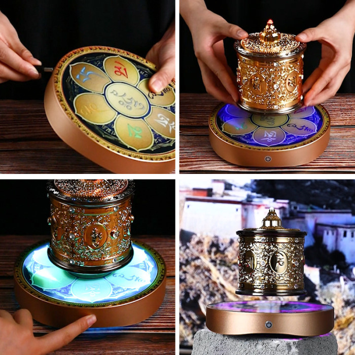 轉經筒磁懸浮創意擺件藏傳居家轉動經輪裝飾品彿堂祝福鍍金六字真