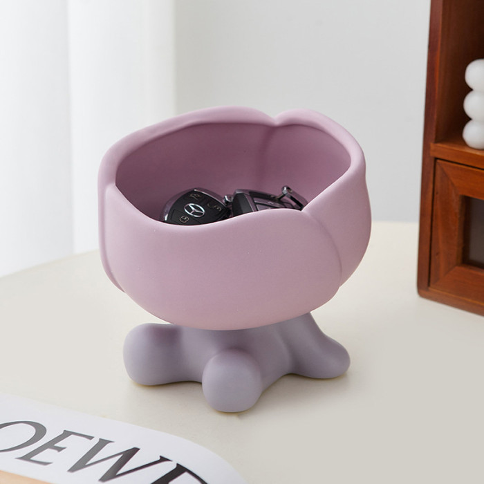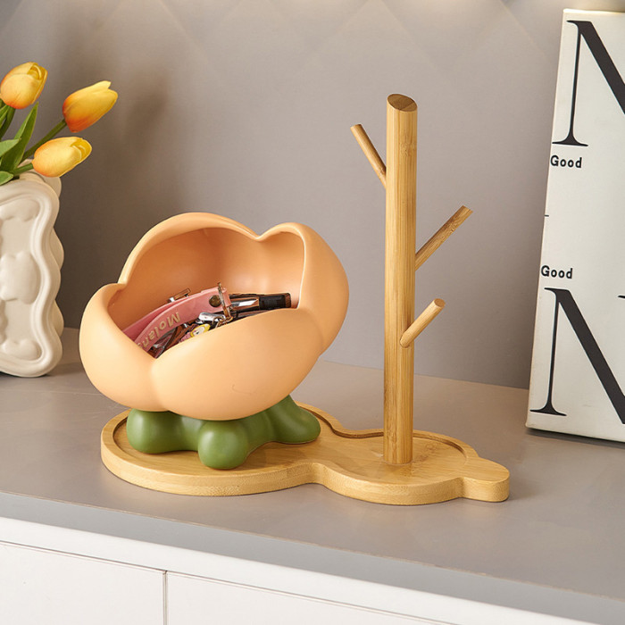 哇屋原創設計奶油風鬱金香鑰匙收納擺件入戶玄關首飾盒化妝桌托盤