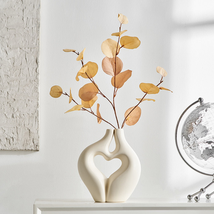 簡約風陶瓷工藝品家居飾品鮮花乾花花束客廳裝飾擺件愛心花瓶