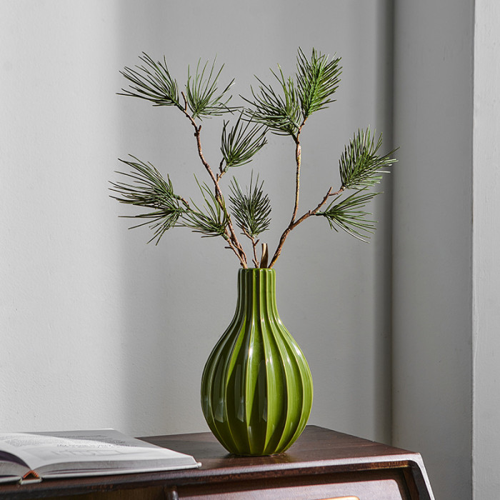 陶瓷綠色簡約條紋花瓶