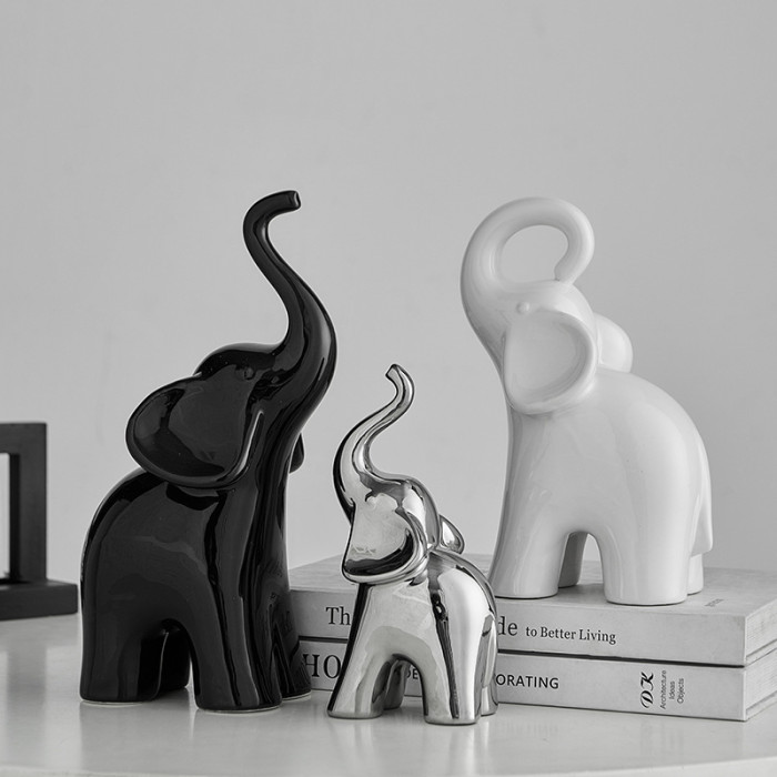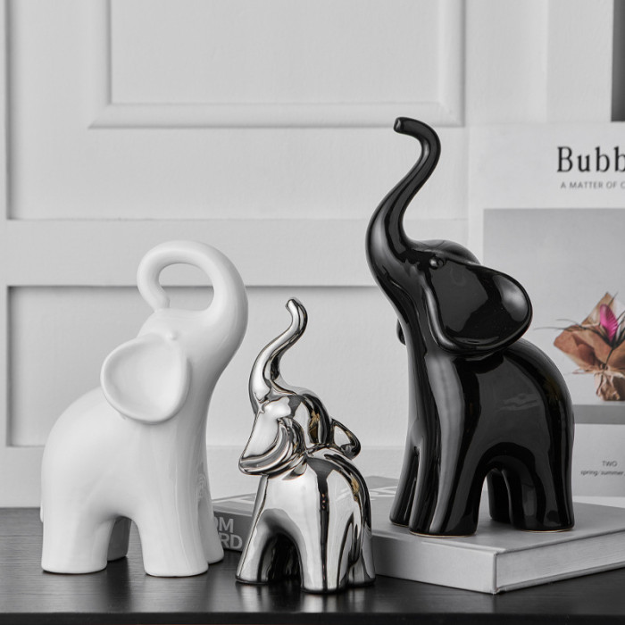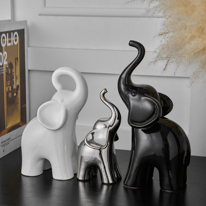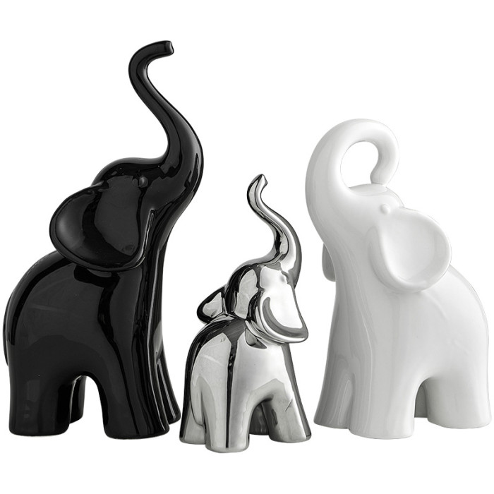 陶瓷大象一家三口簡約創意辦公室客廳喬遷新居禮物擺件高級感小衆