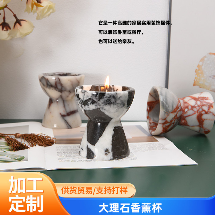 輕奢風天然大理石香薰杯裝飾擺件客廳臥室酒店軟裝家居擺件飾品