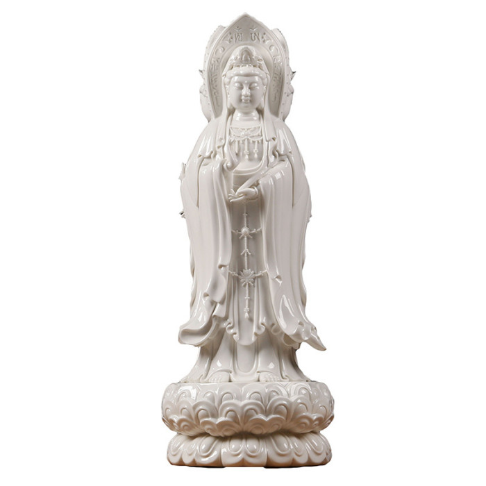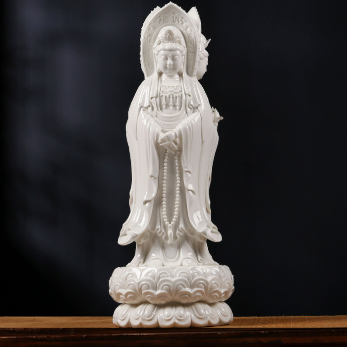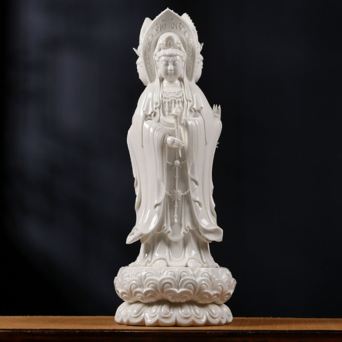 陶瓷南海三面觀音彿像擺件 白瓷觀世音菩薩像家居風水供奉工藝品
