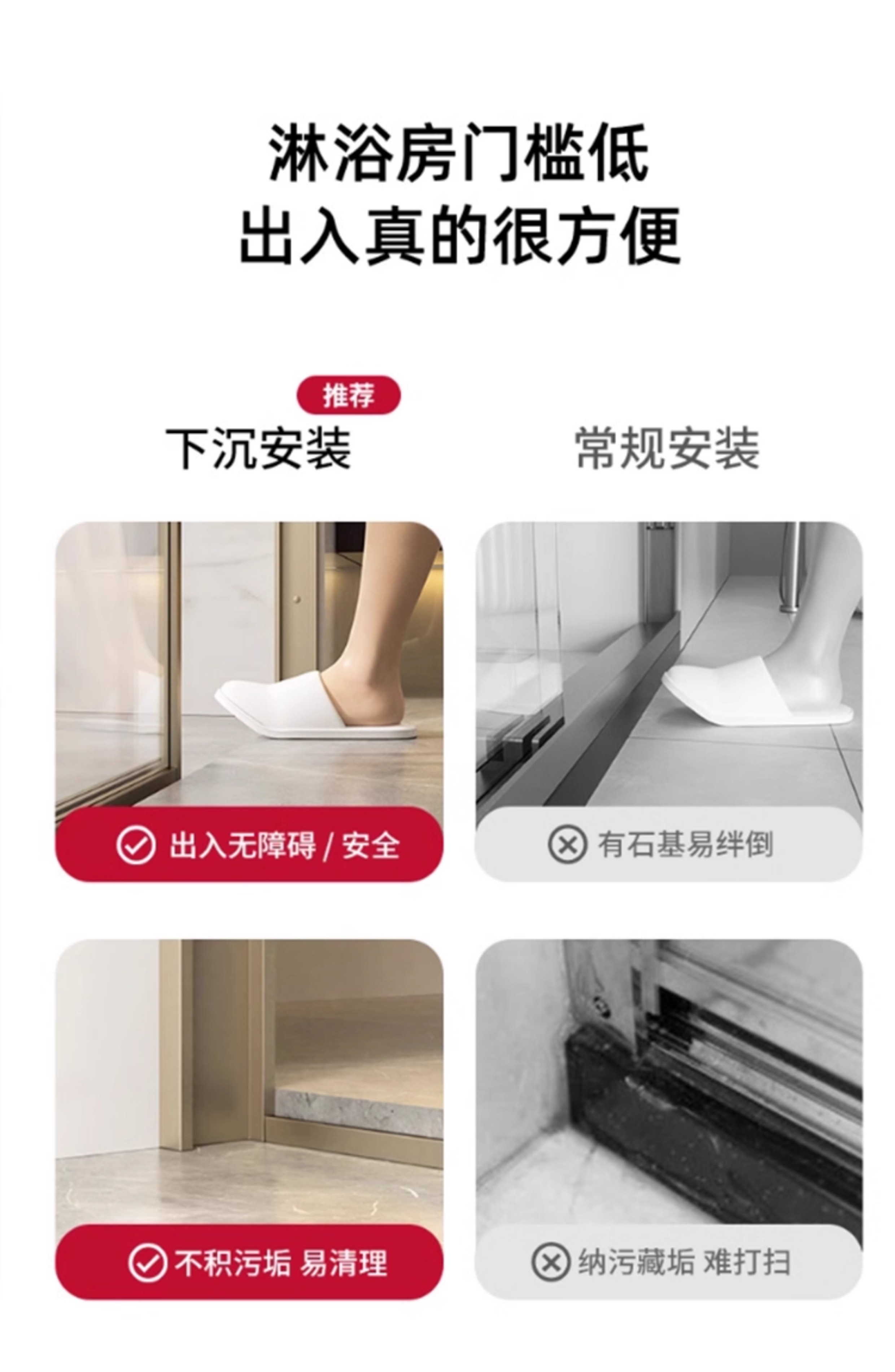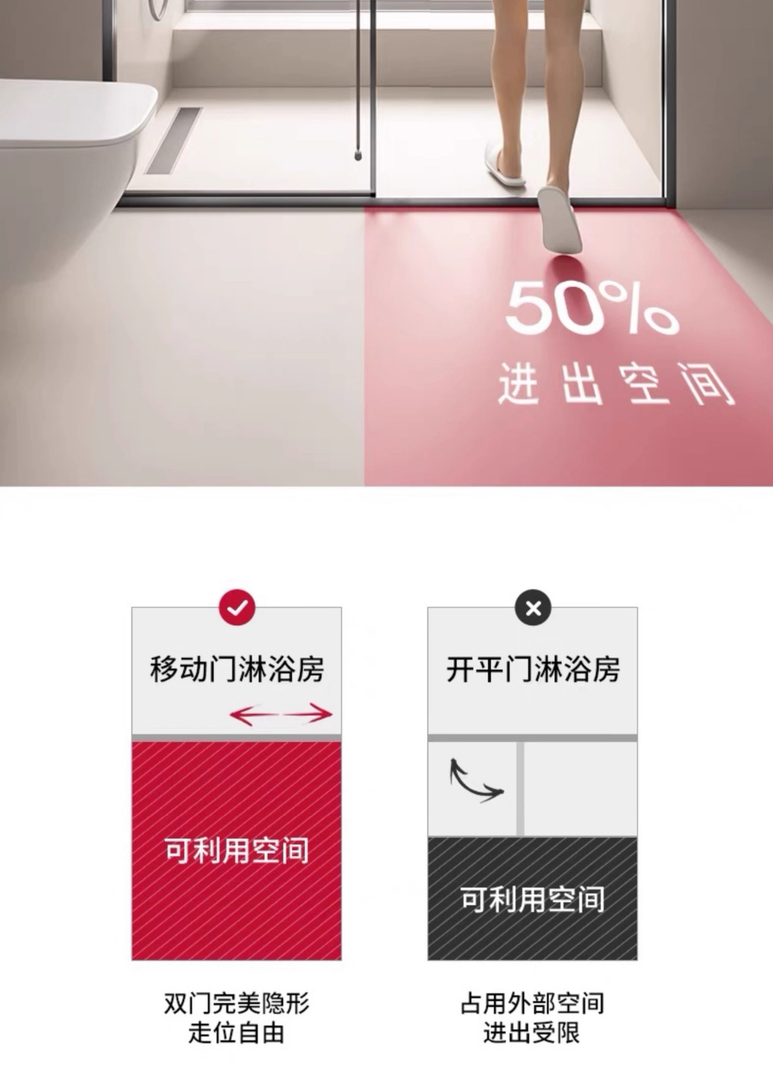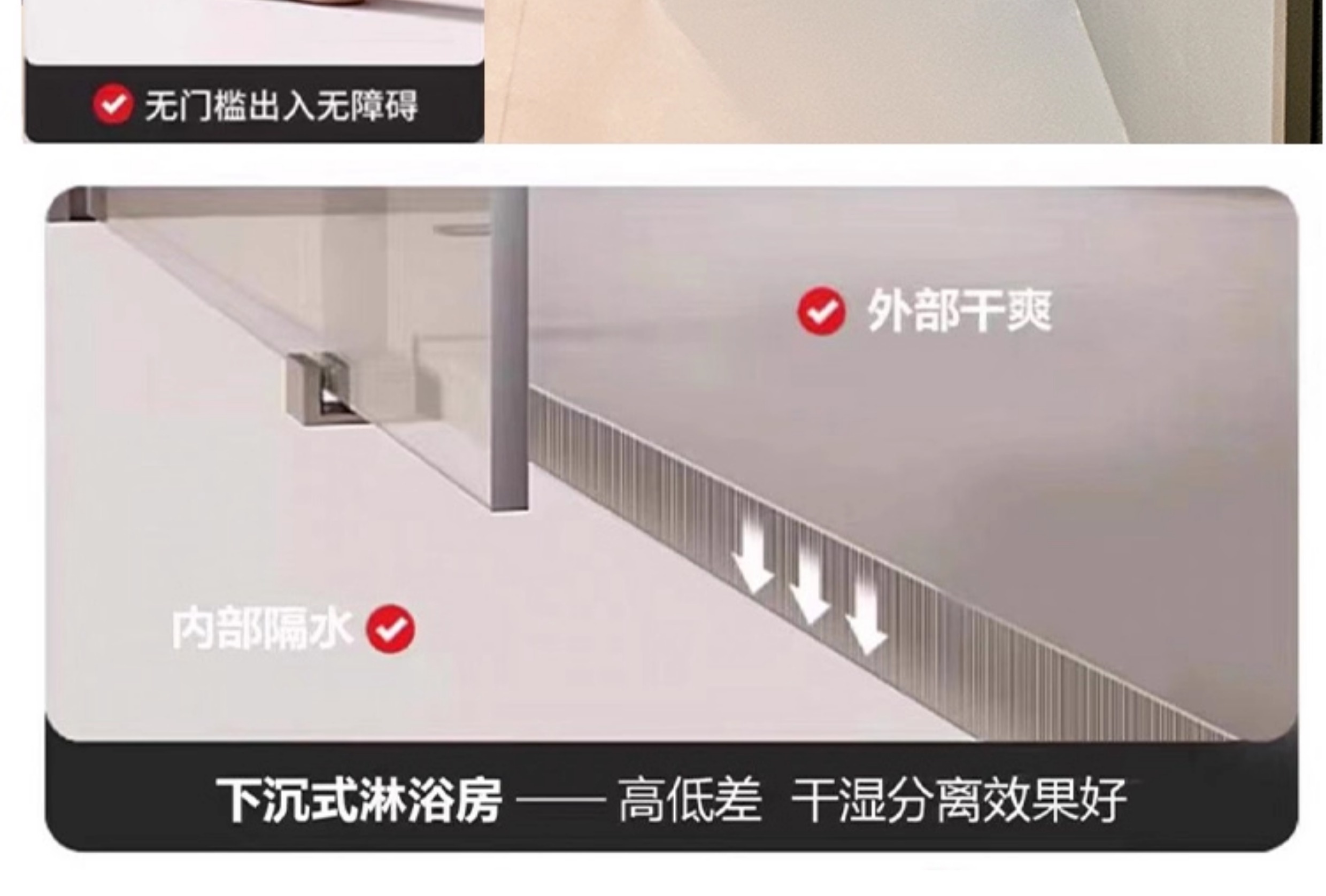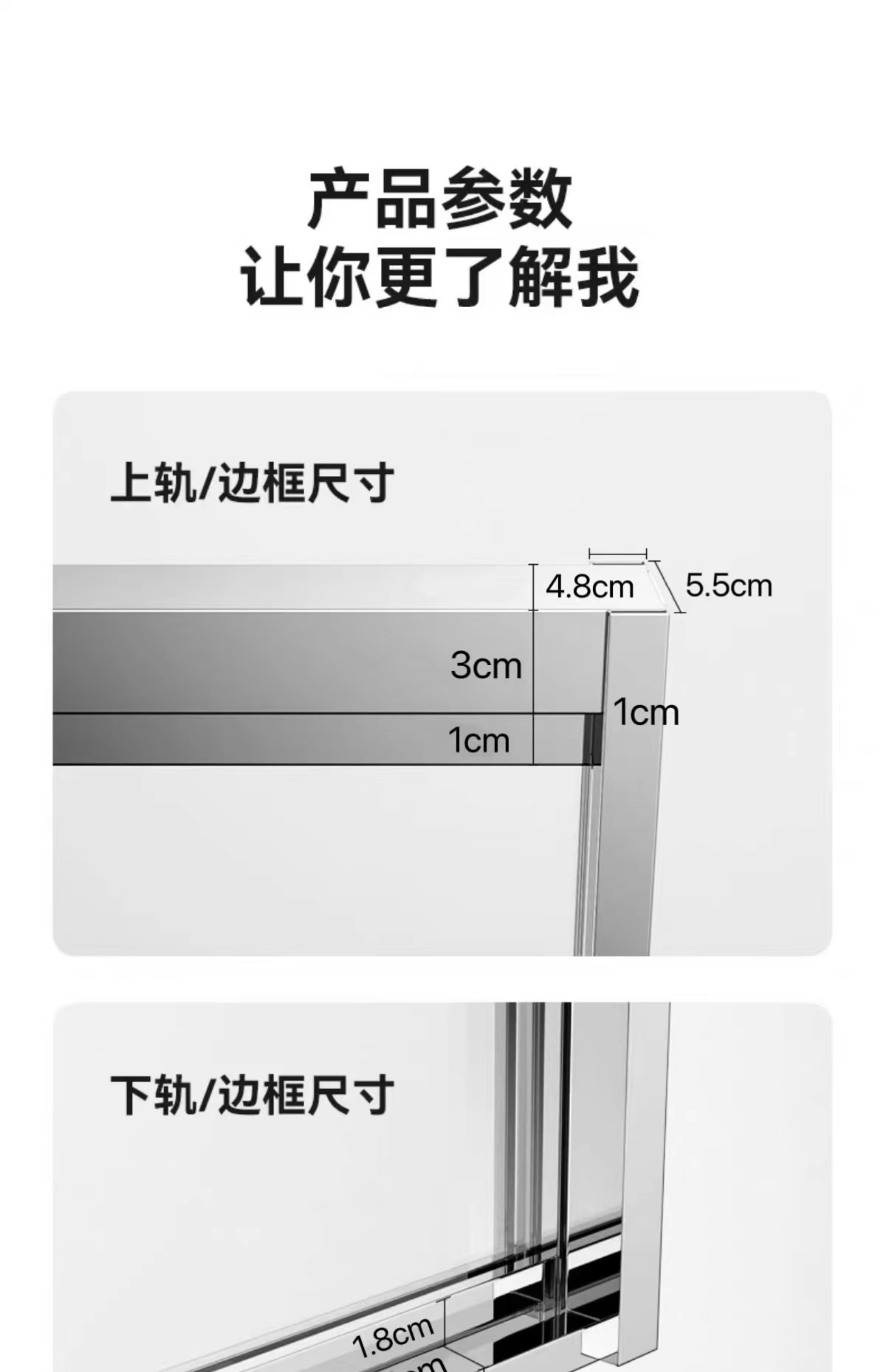 無障礙淋浴房全包框移門下沉衛生間玻璃隔斷浴室乾溼分離一字型窄