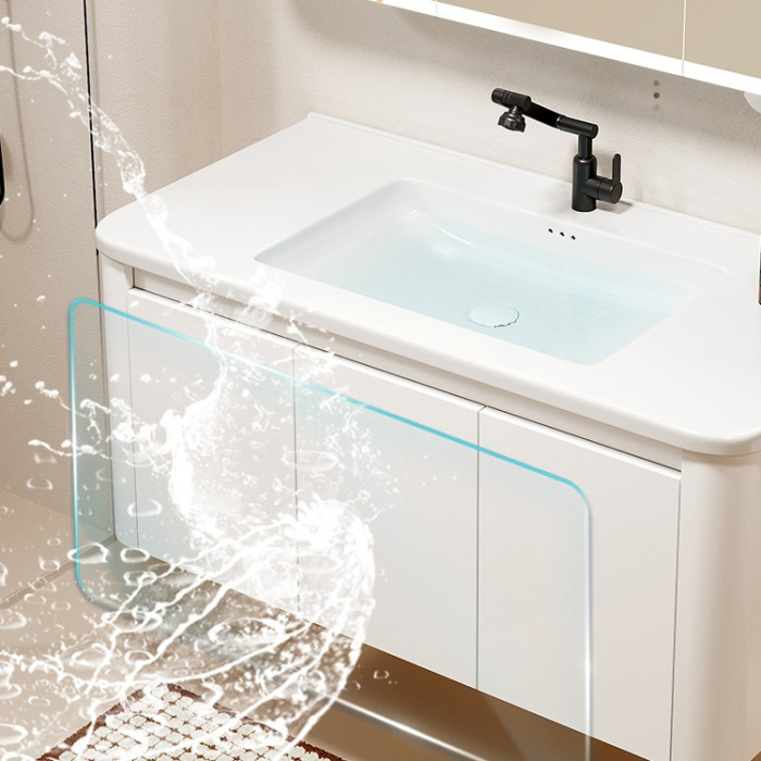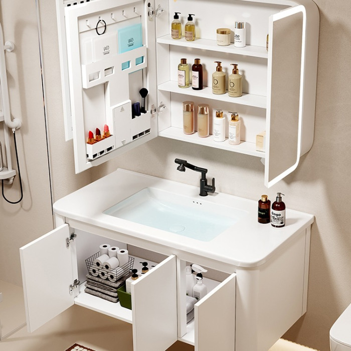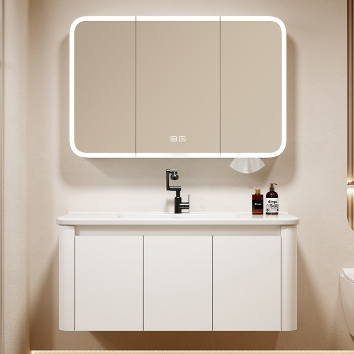 掛牆圓弧浴室櫃組合衛生間洗手洗臉一體陶瓷盆洗漱台美妝智能鏡櫃