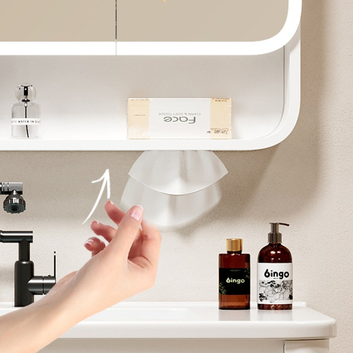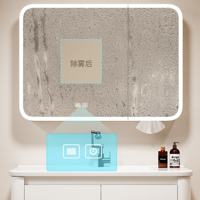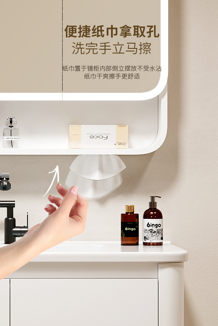 規格 100CM陶瓷盆櫃+圓弧半封智能鏡櫃【帶紙巾抽】 黑貓龍頭