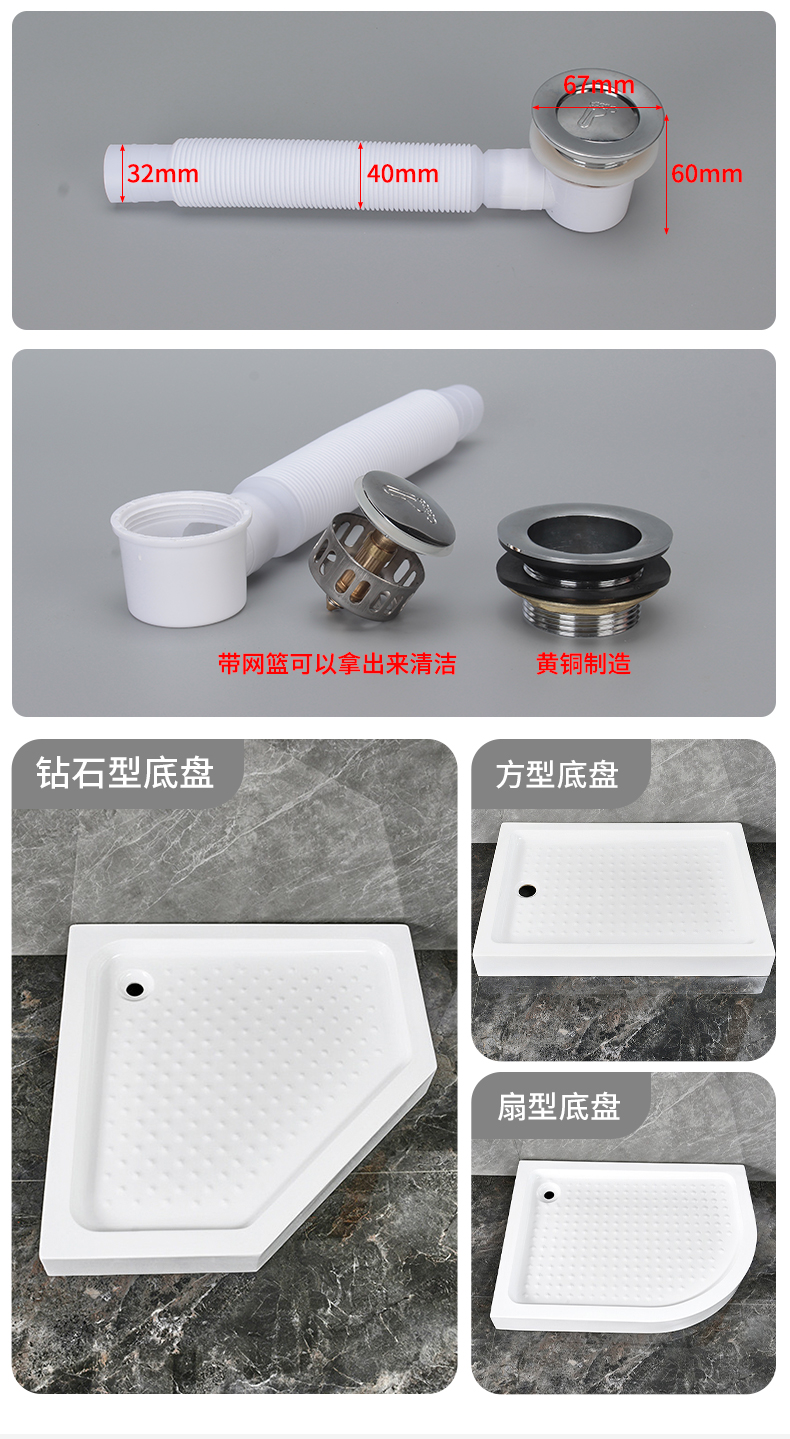 加厚加大淋浴房底座底盆防水亞克力弧扇形長方形防滑乾溼分離底盤