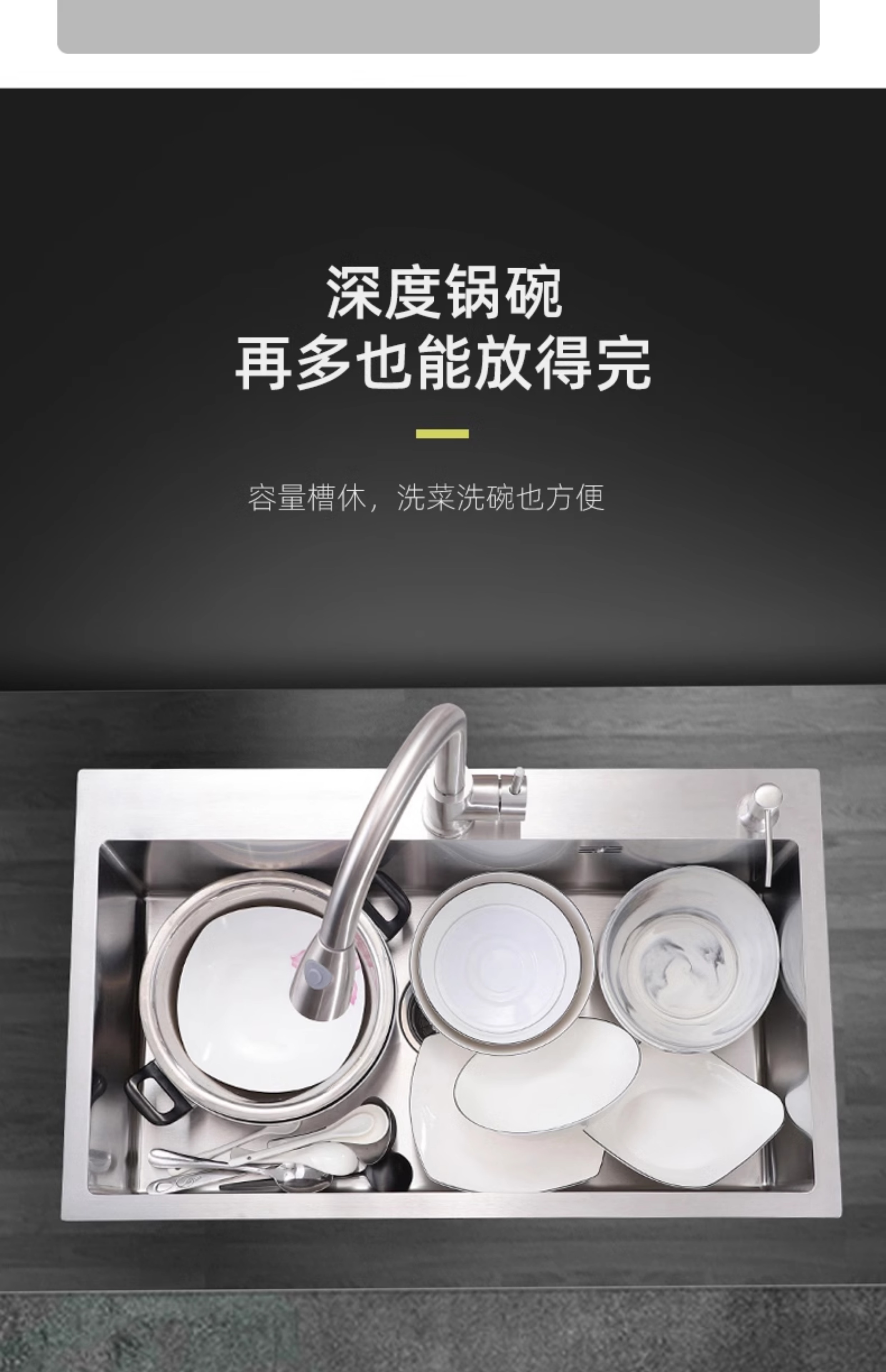 廚房水槽304不鏽鋼手工拉絲加厚單槽家用洗菜盆洗碗槽水池台下盆