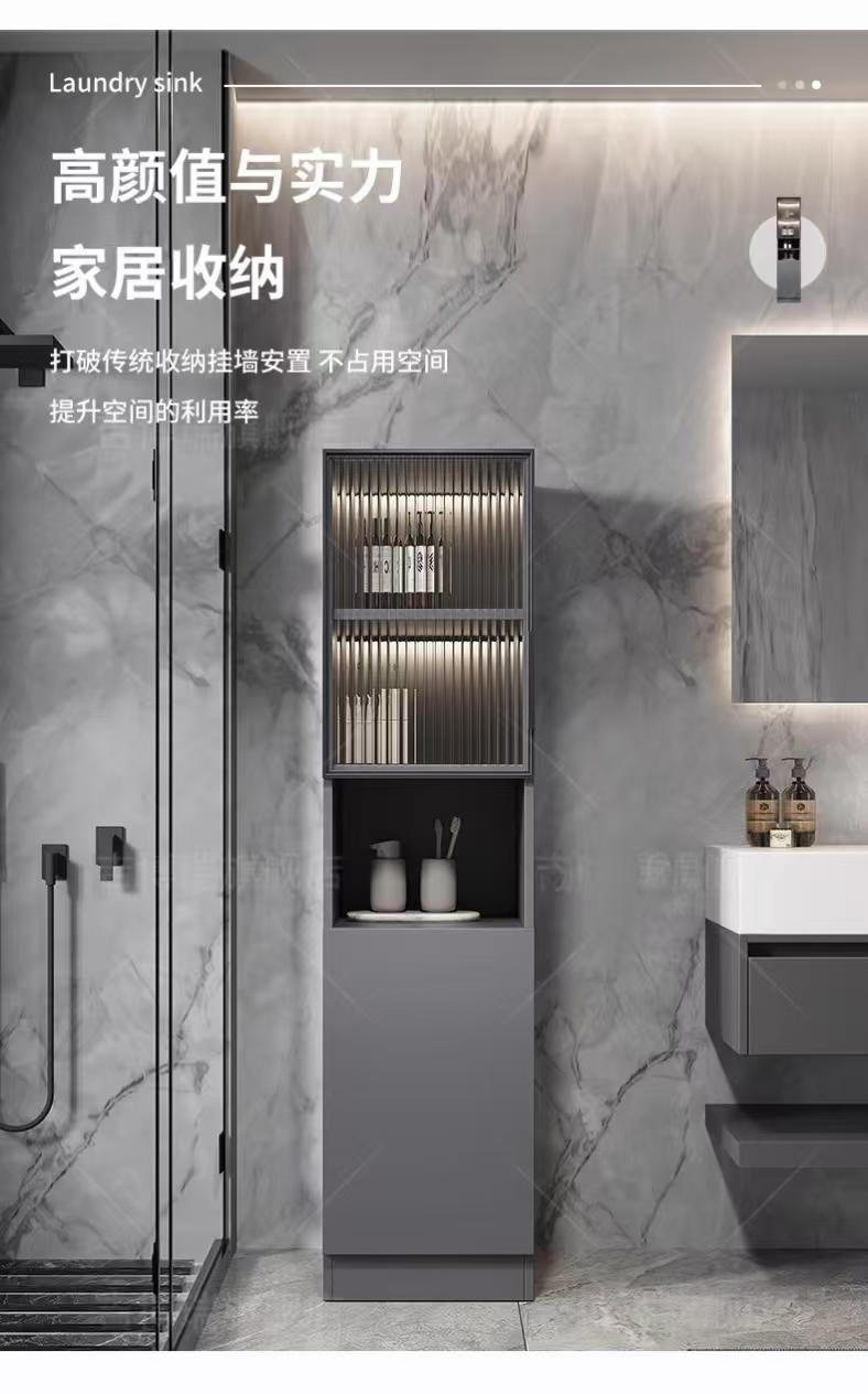 鋁合金浴室衛生間夾縫立櫃高櫃收納櫃蜂窩落地儲物櫃一體防