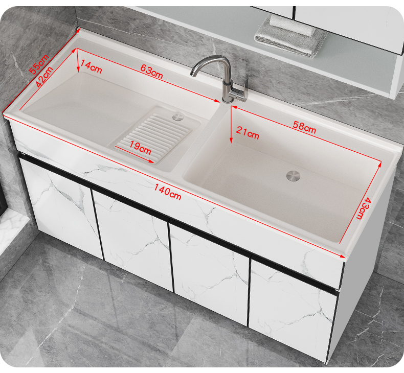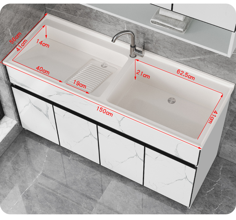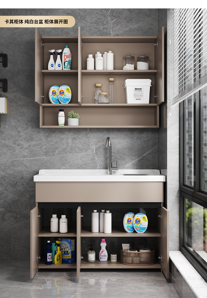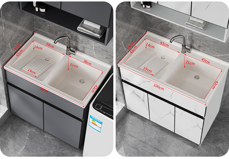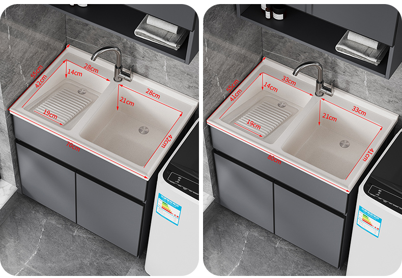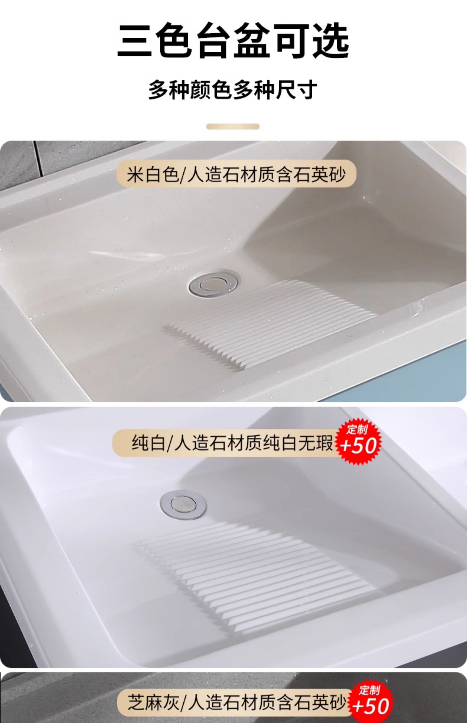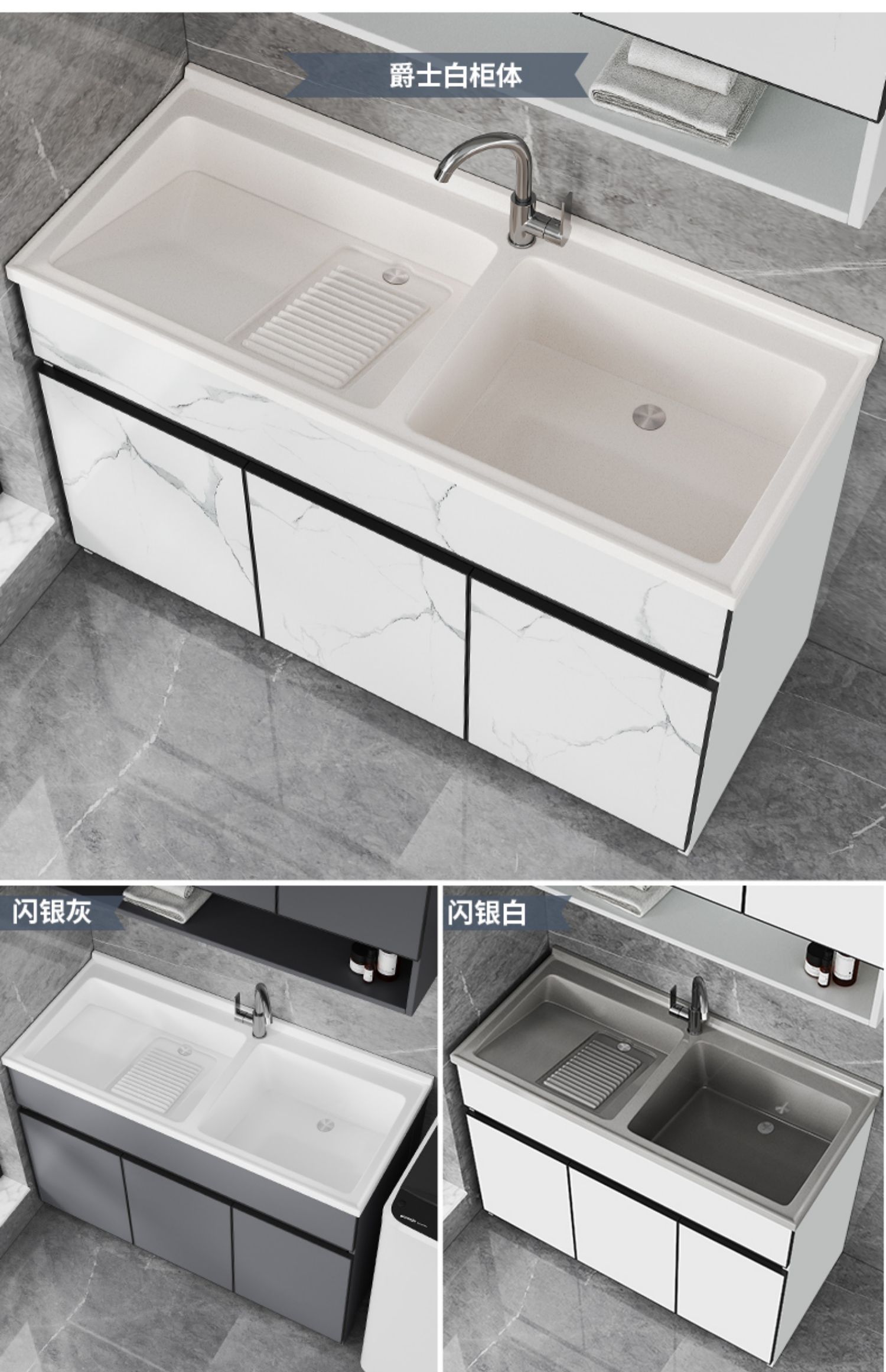 洗衣櫃一體雙盆人造石英石洗衣池帶搓板陽台太空鋁浴室櫃組合定