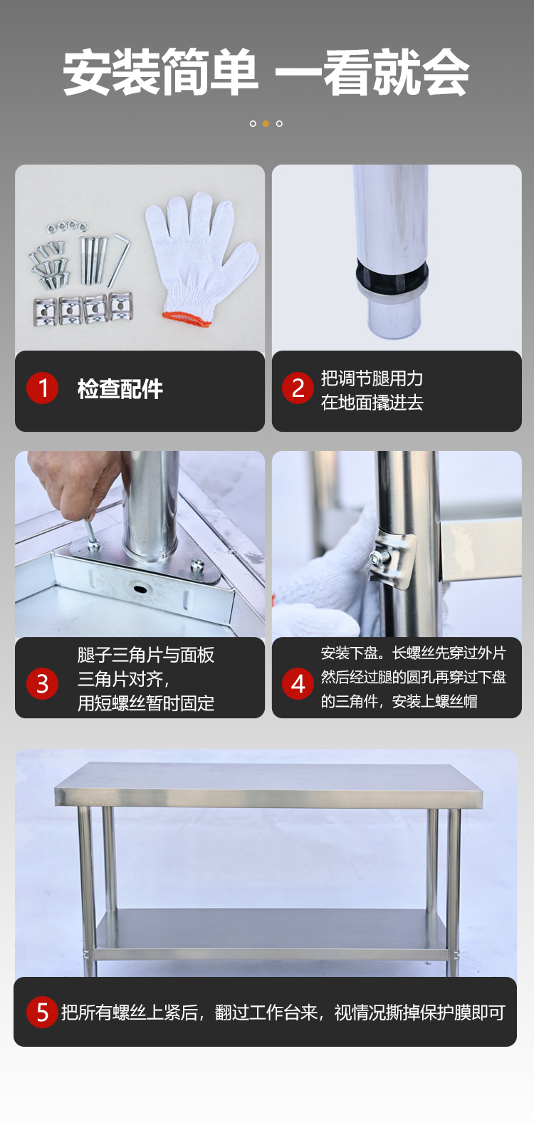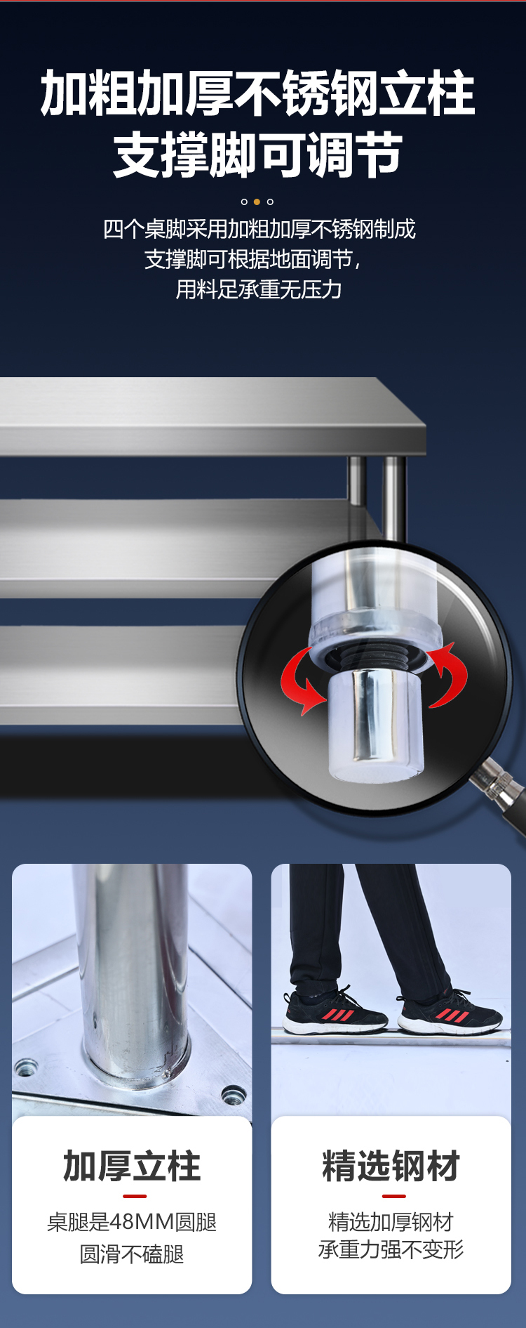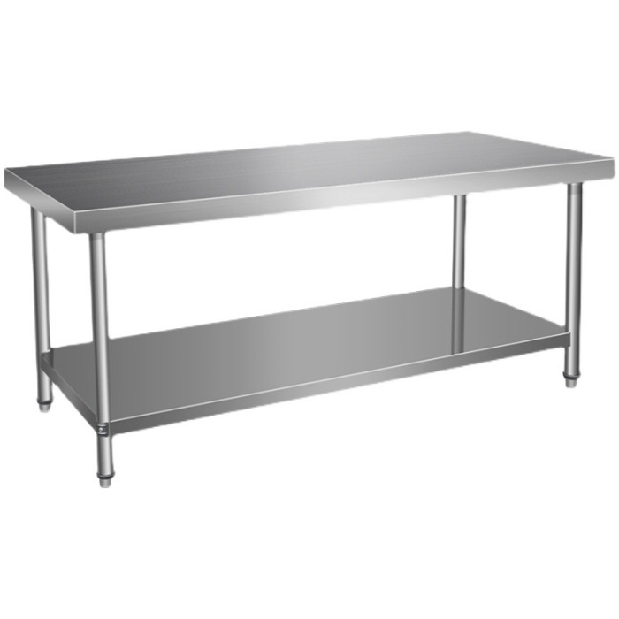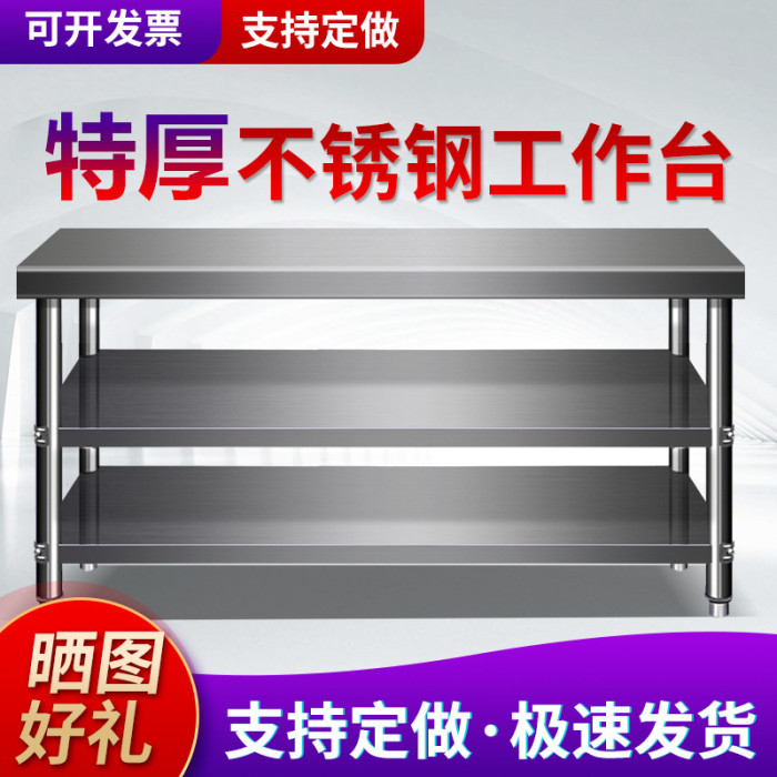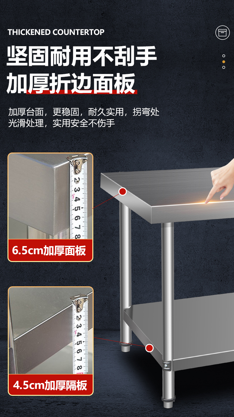 加厚不鏽鋼工作台飯店廚房操作台烘焙揉麵切菜桌子雙層打荷打包台