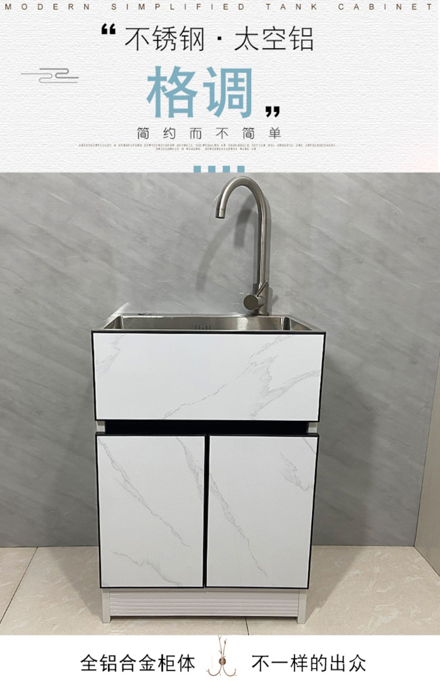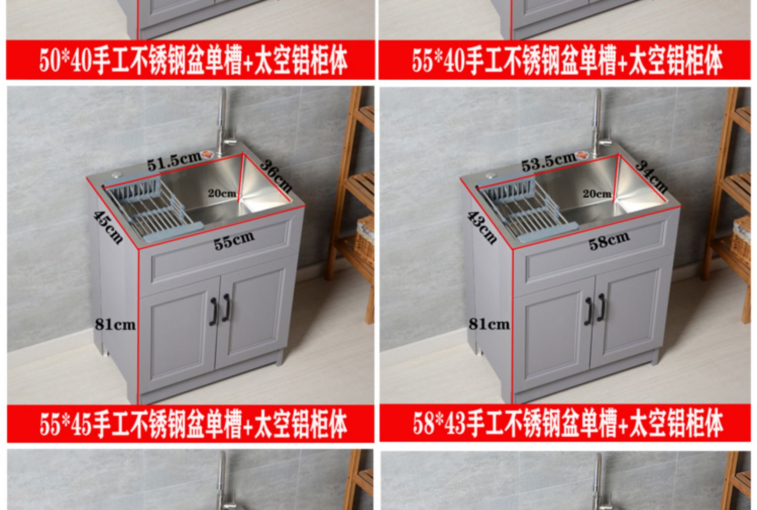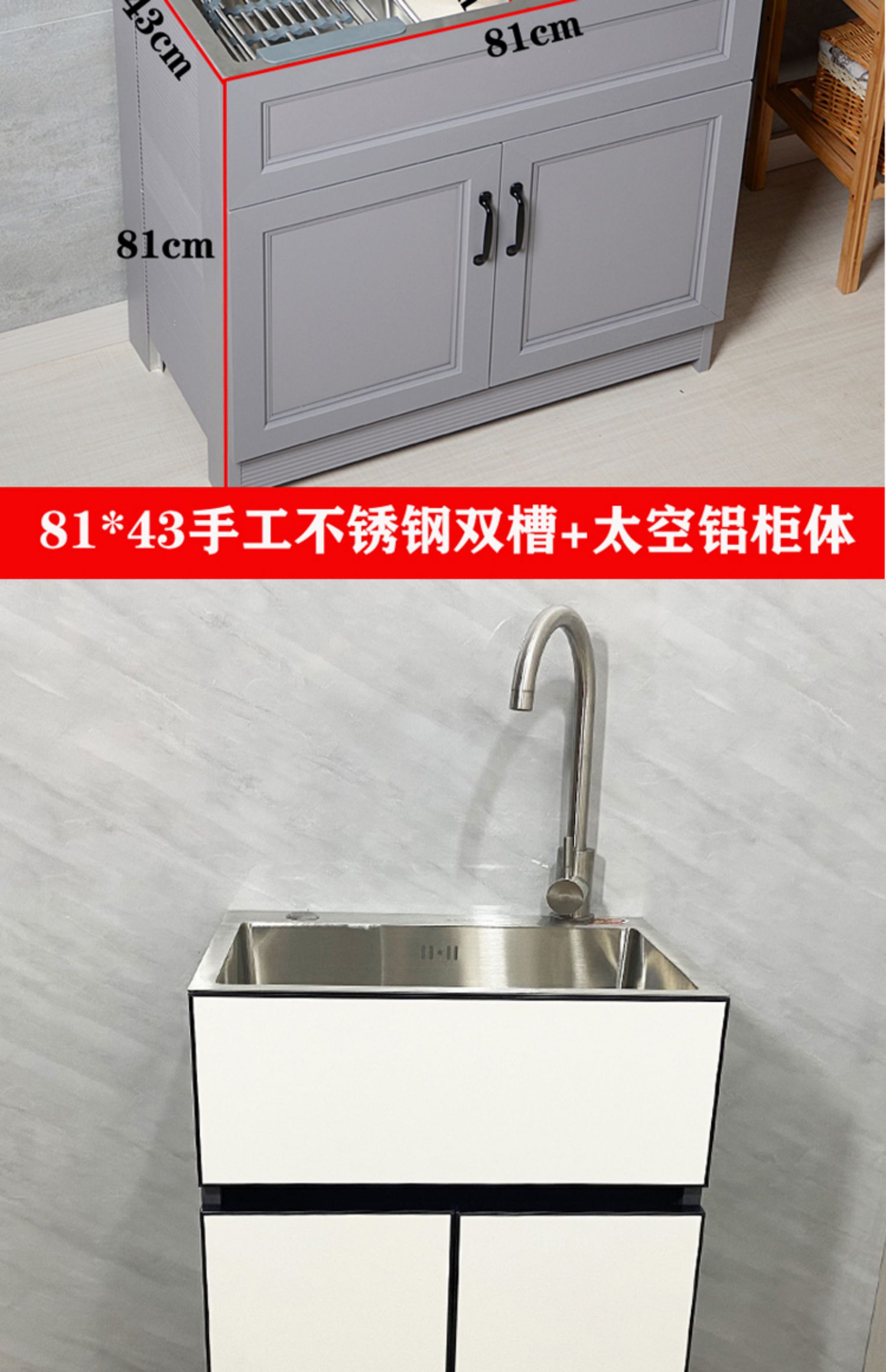 304不鏽鋼水槽戶外一體 陽台太空鋁洗衣櫃洗手池落地家用浴室櫃