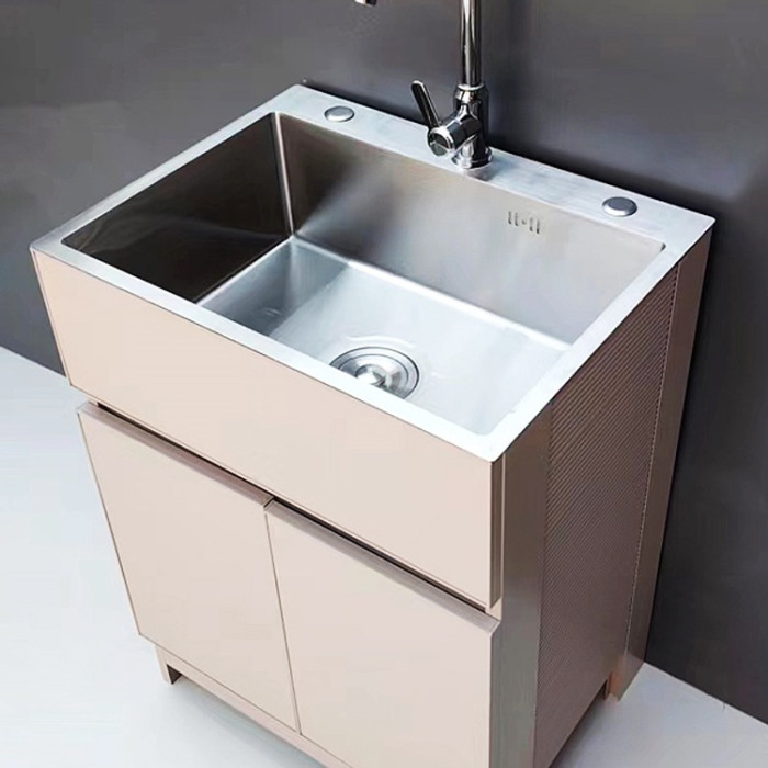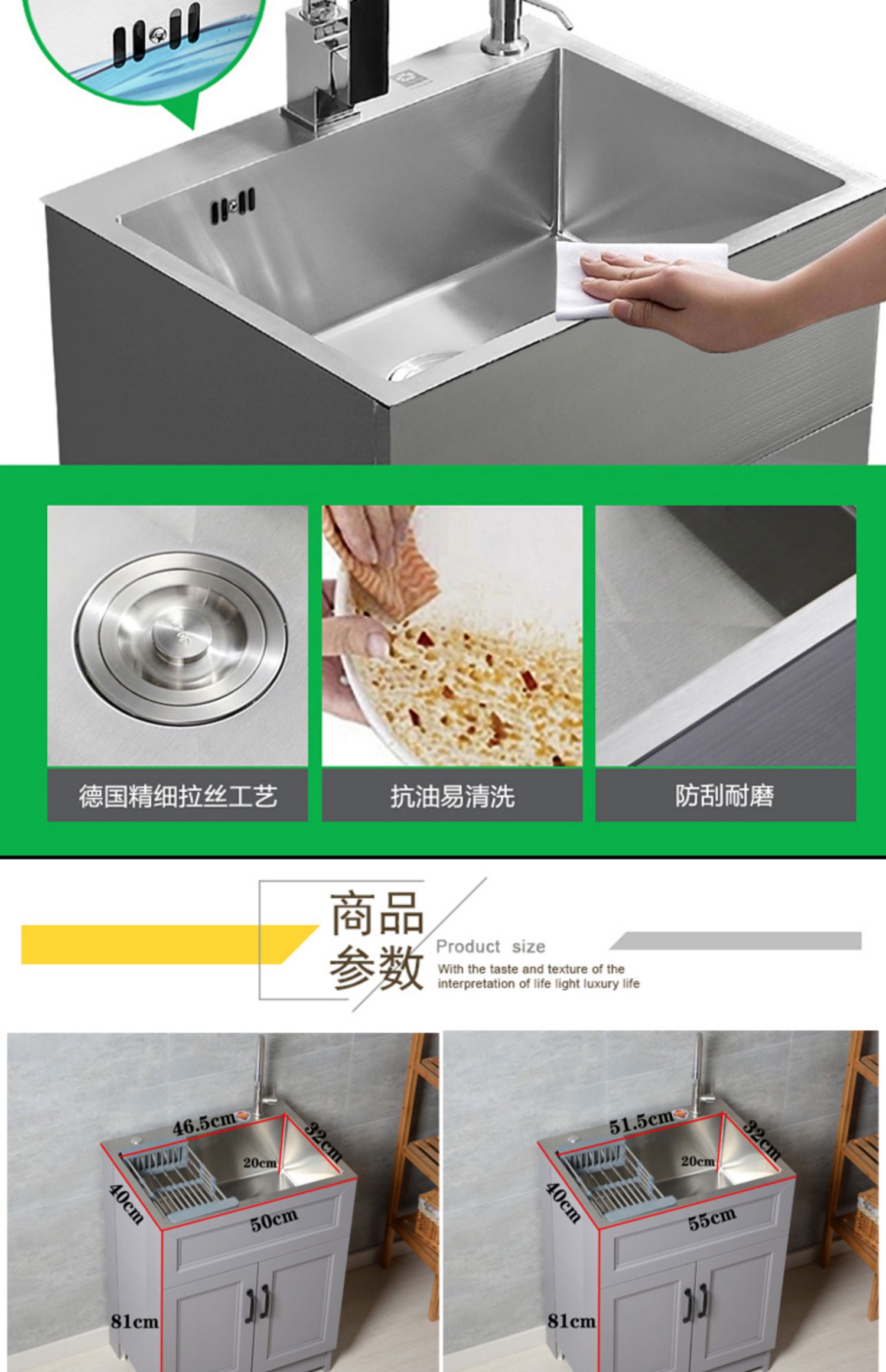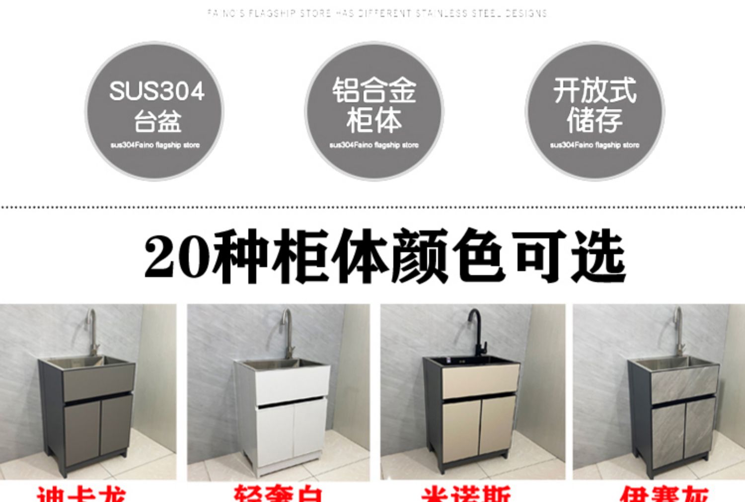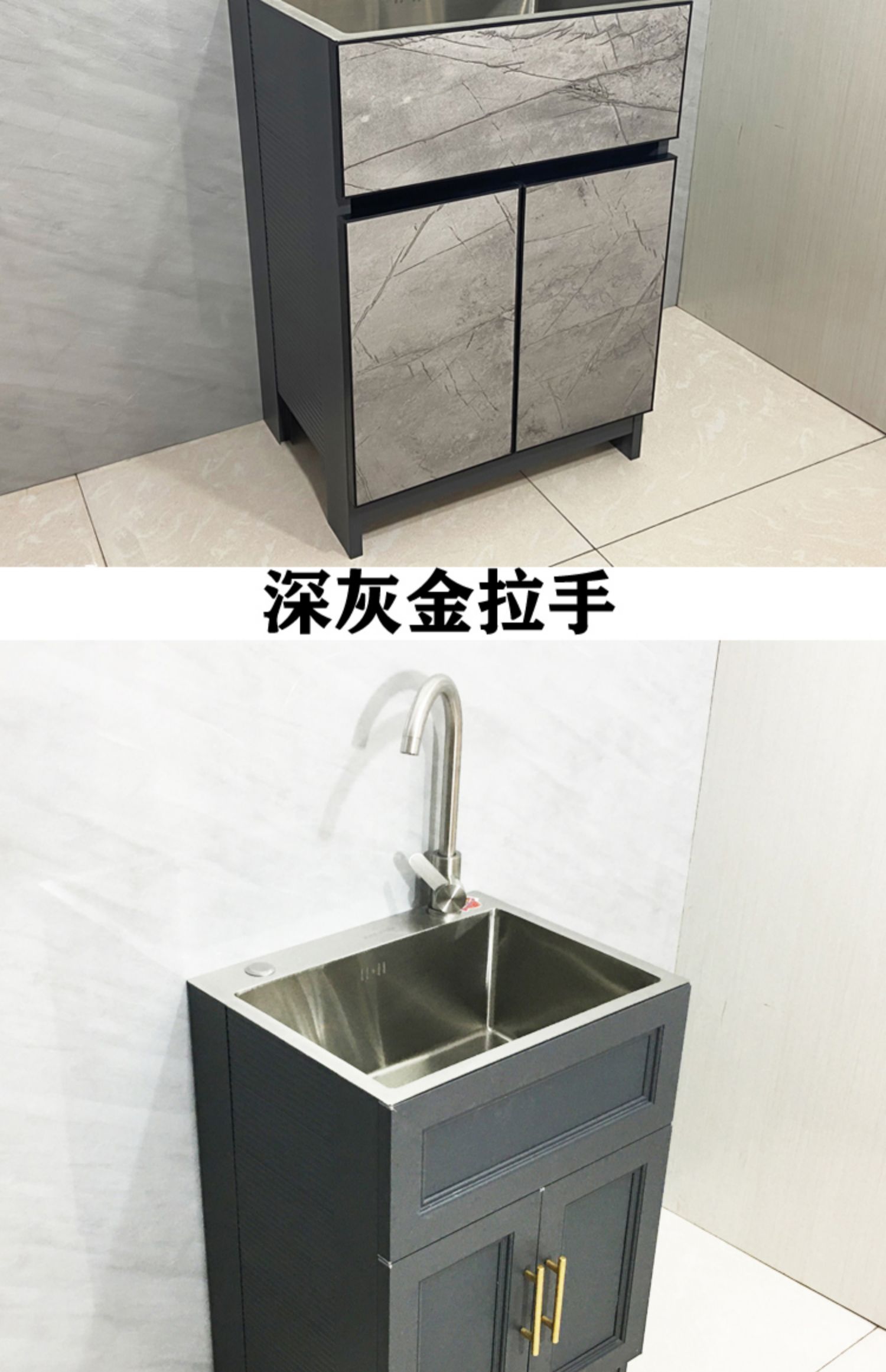 304不鏽鋼水槽戶外一體 陽台太空鋁洗衣櫃洗手池落地家用浴室櫃