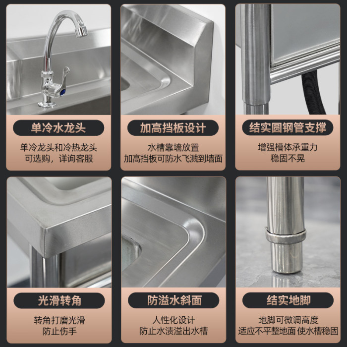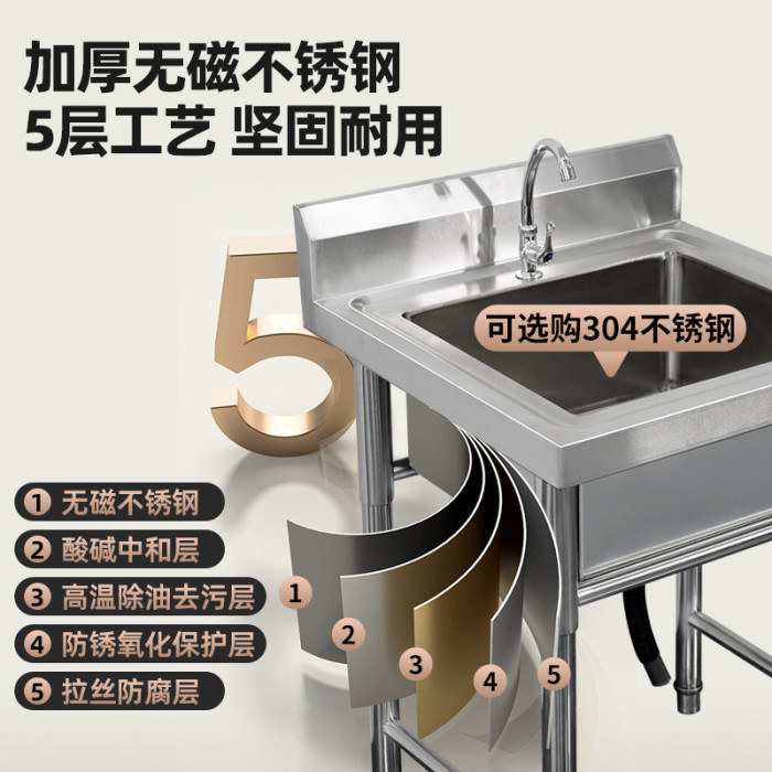 304加厚款不鏽鋼水池水槽單雙三平台水池家用商用洗碗洗手盆消毒