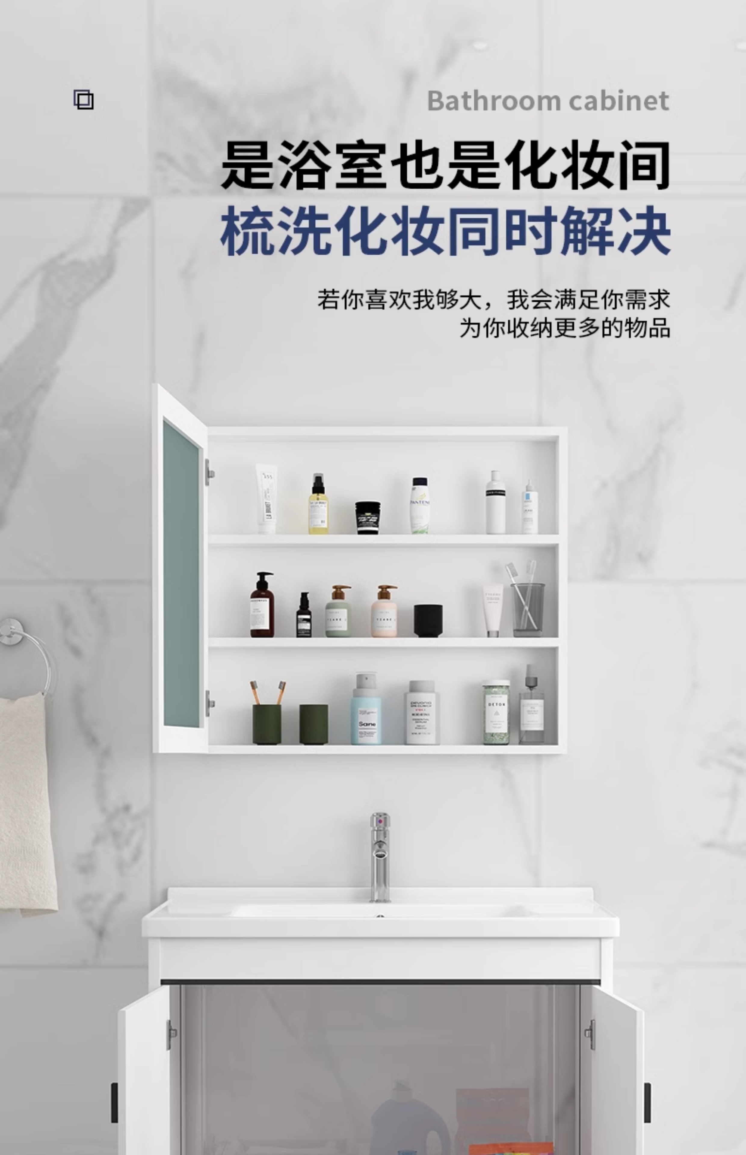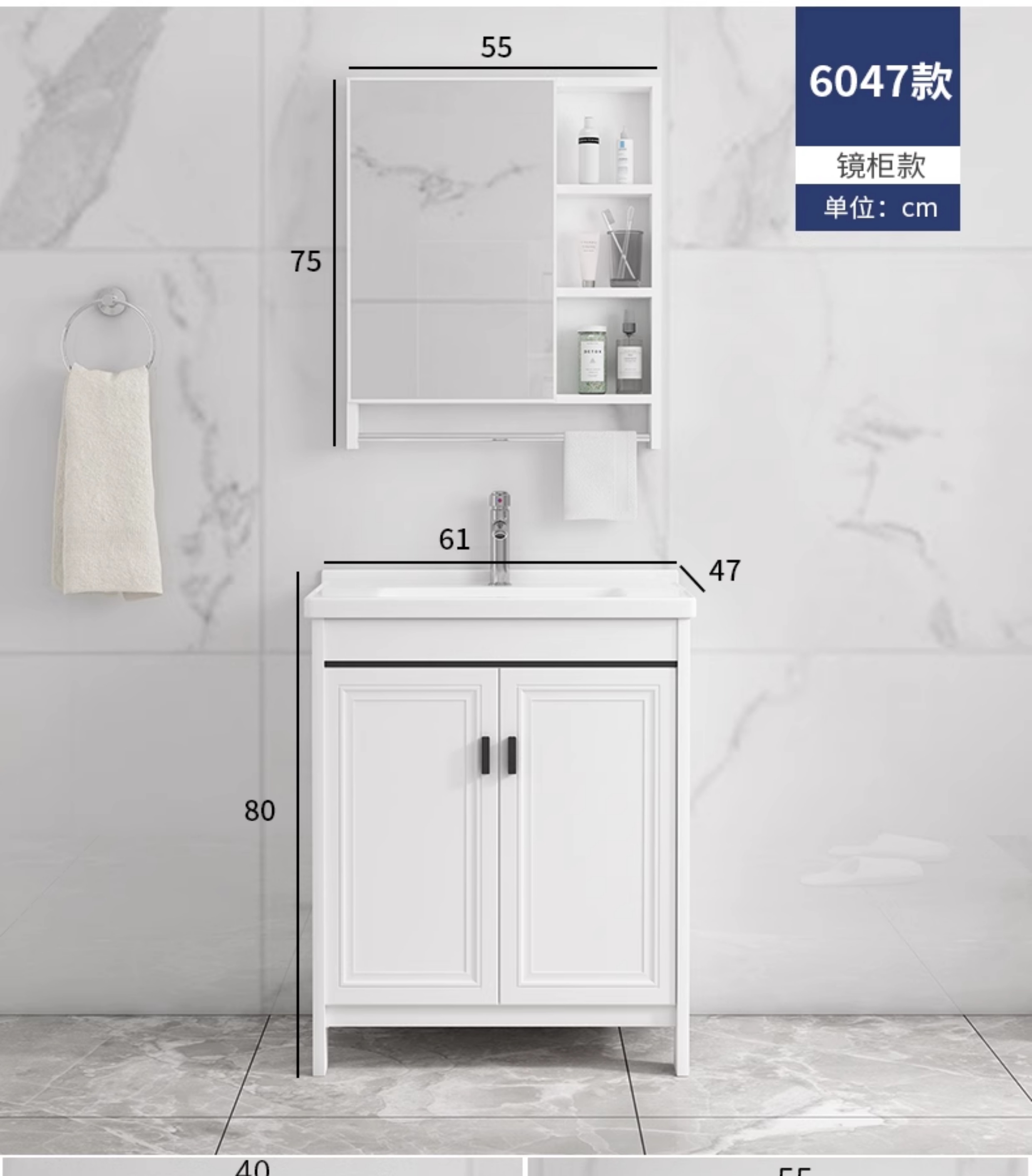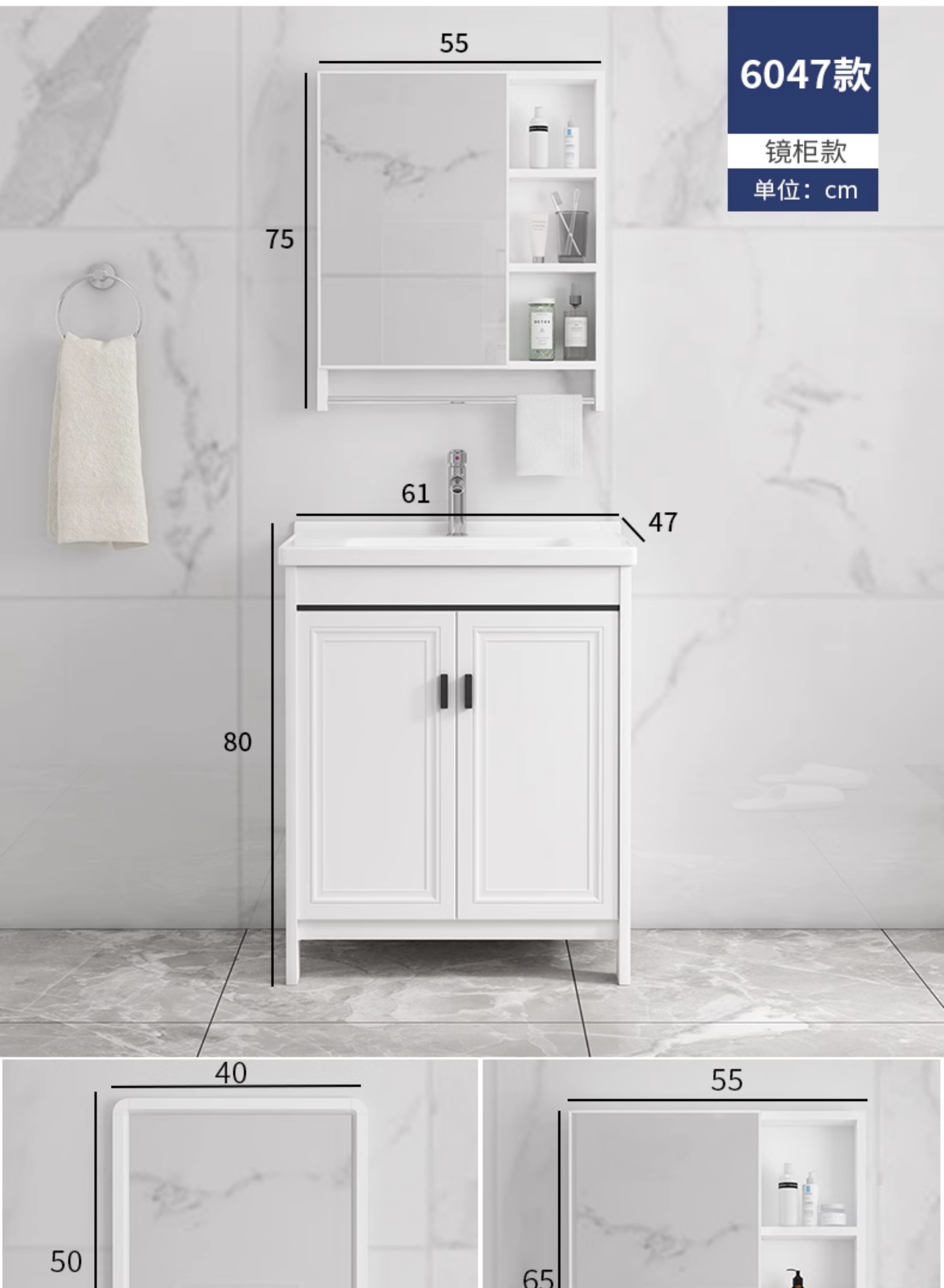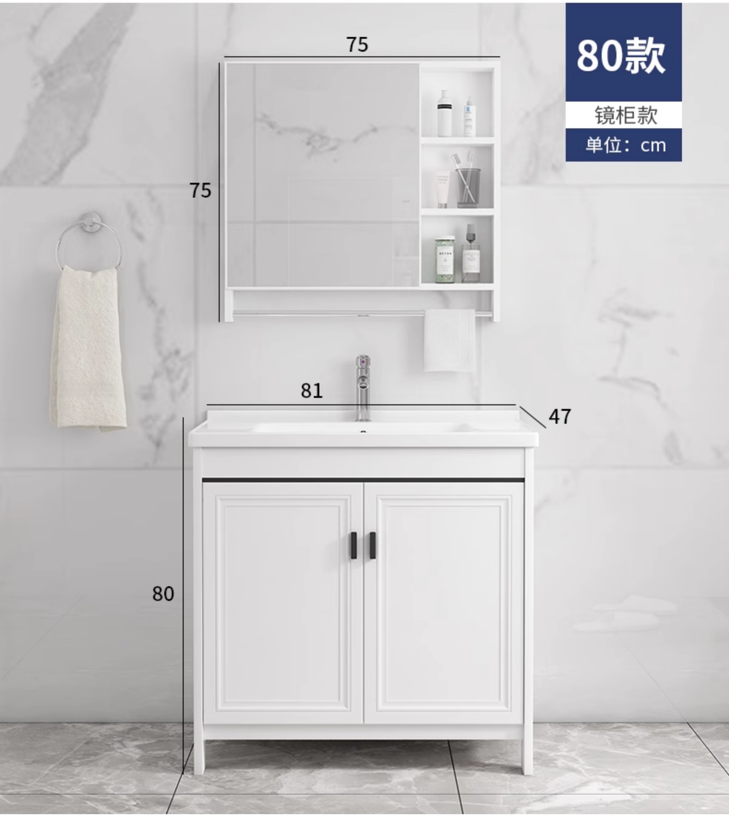 | 規格 | 1米平盆款落地+龍頭下水白鏡櫃帶杆全包落地白櫃 |