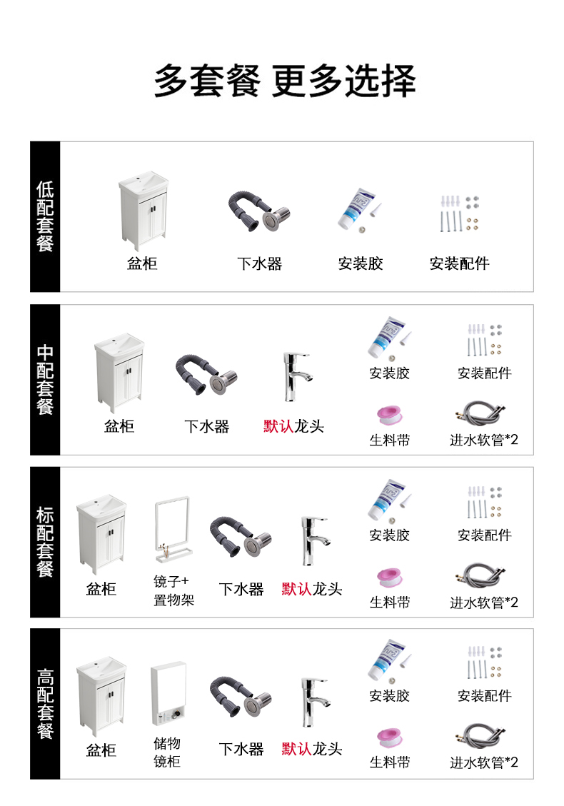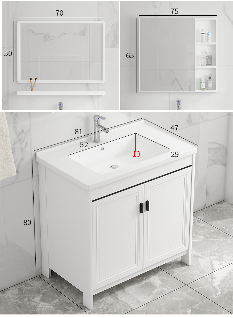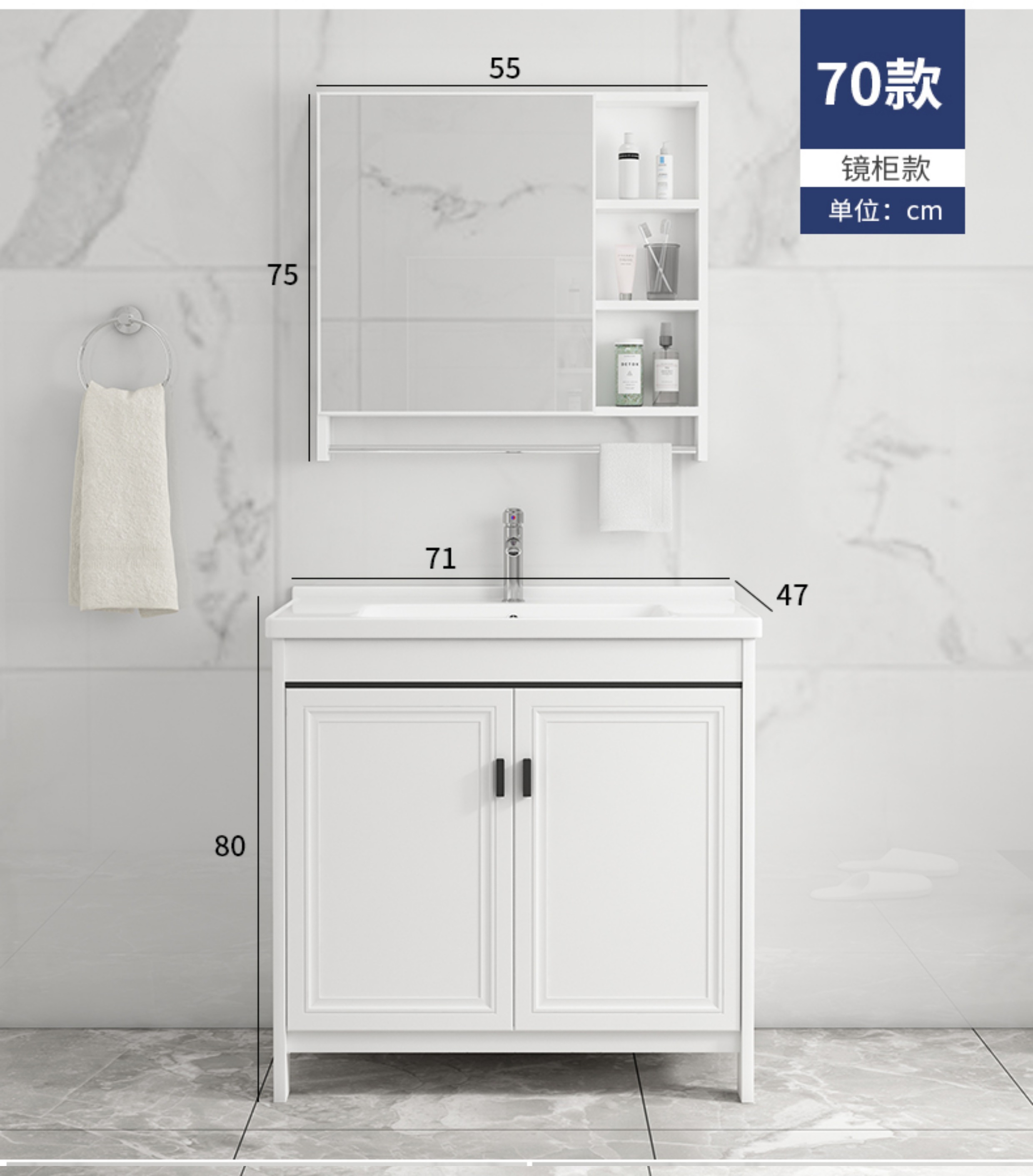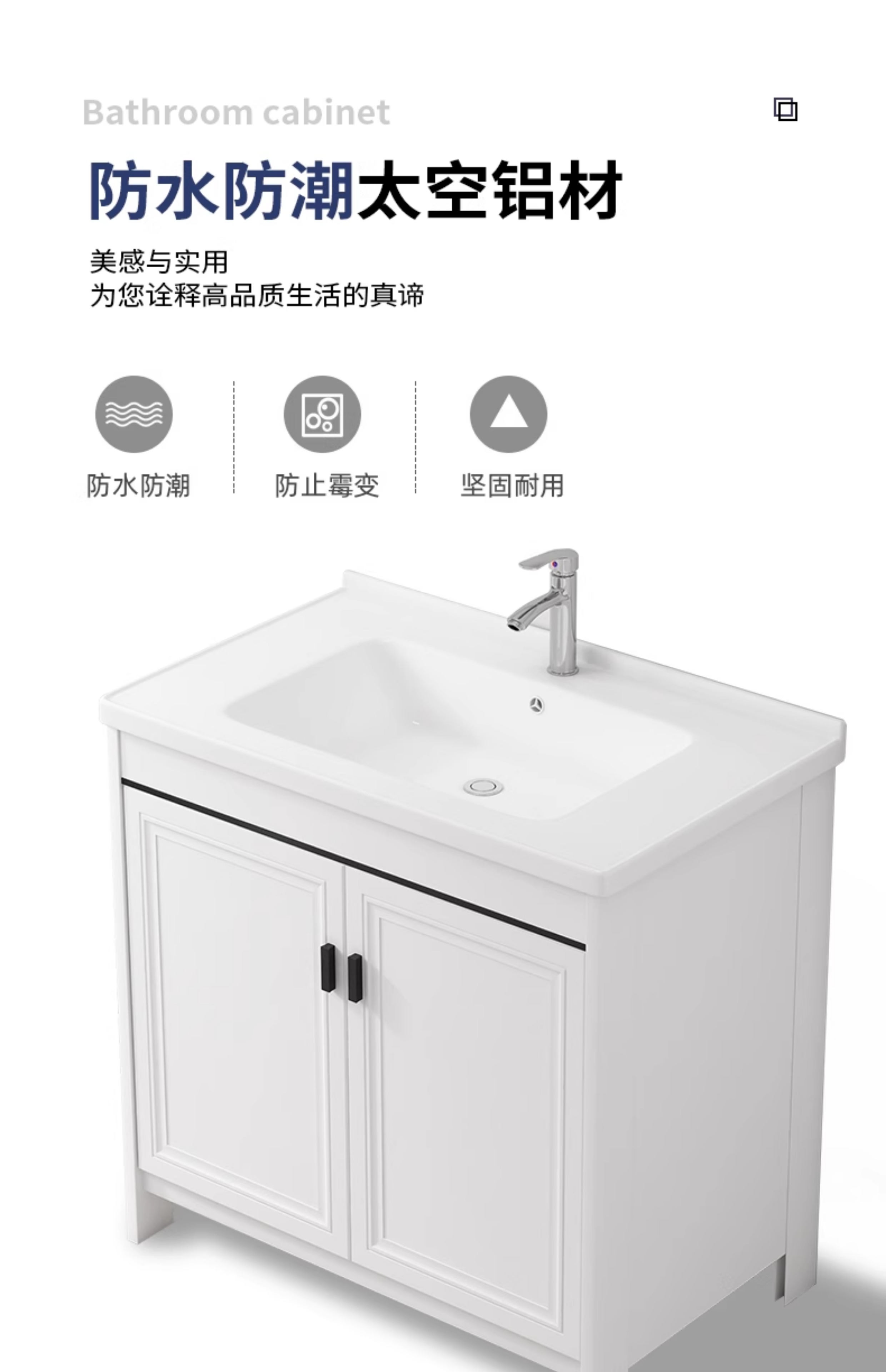 | 規格 | 1米平盆款落地+龍頭下水白鏡櫃帶杆全包落地白櫃 |