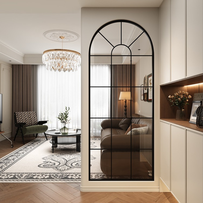 法式復古玻璃屏風客廳奶油風鐵藝隔斷假窗戶創意拱門玄關遮擋裝飾
