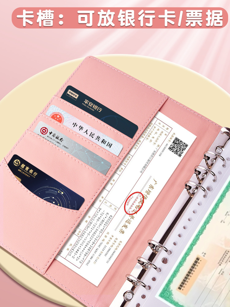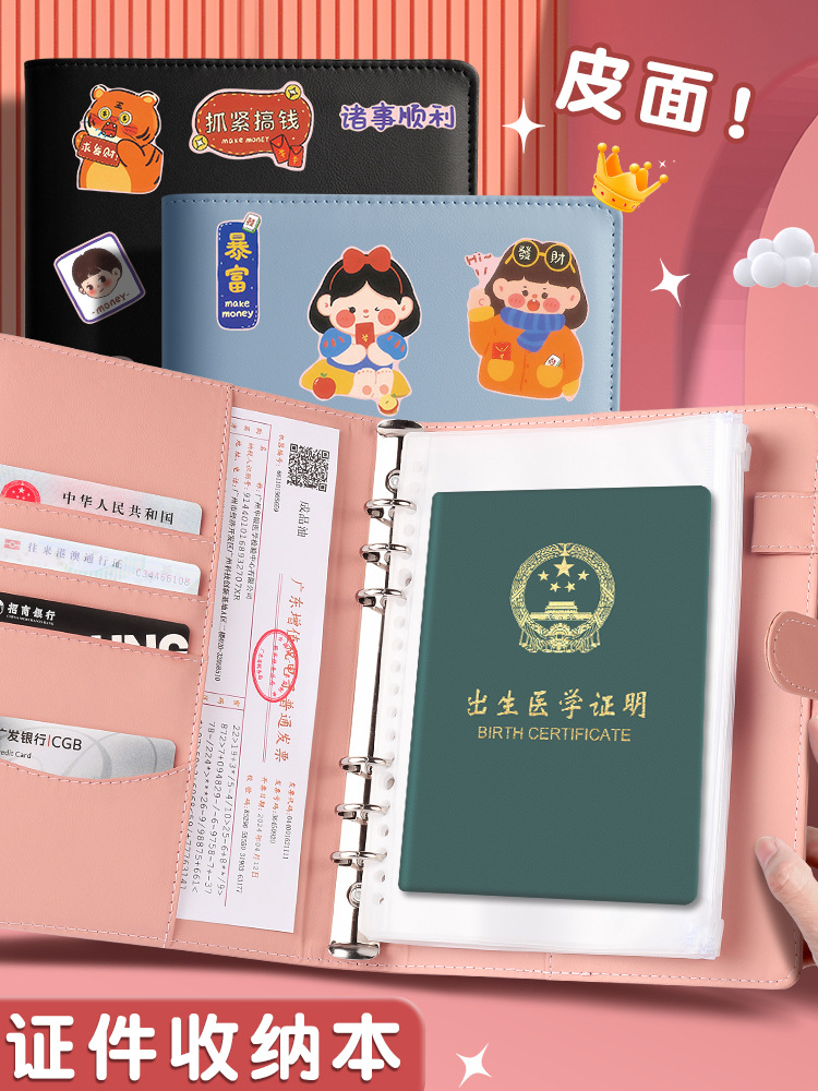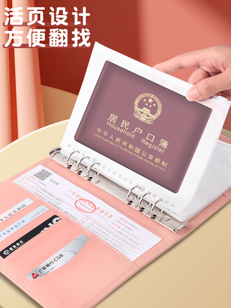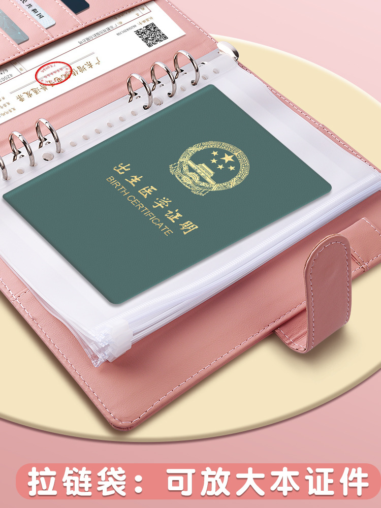 証件收納本皮質活頁收納冊拉鍊袋銀行卡票據收集冊家庭証件收納包
