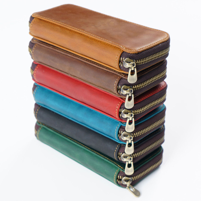 新品三支裝拉鍊筆袋頭層牛皮鋼筆收納包加大容量票據文具盒筆盒