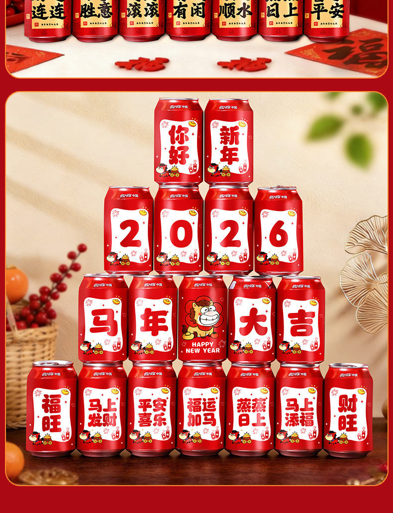 2026新年可樂貼紙馬年年會年夜飯飲料貼春節氛圍裝飾布置用品