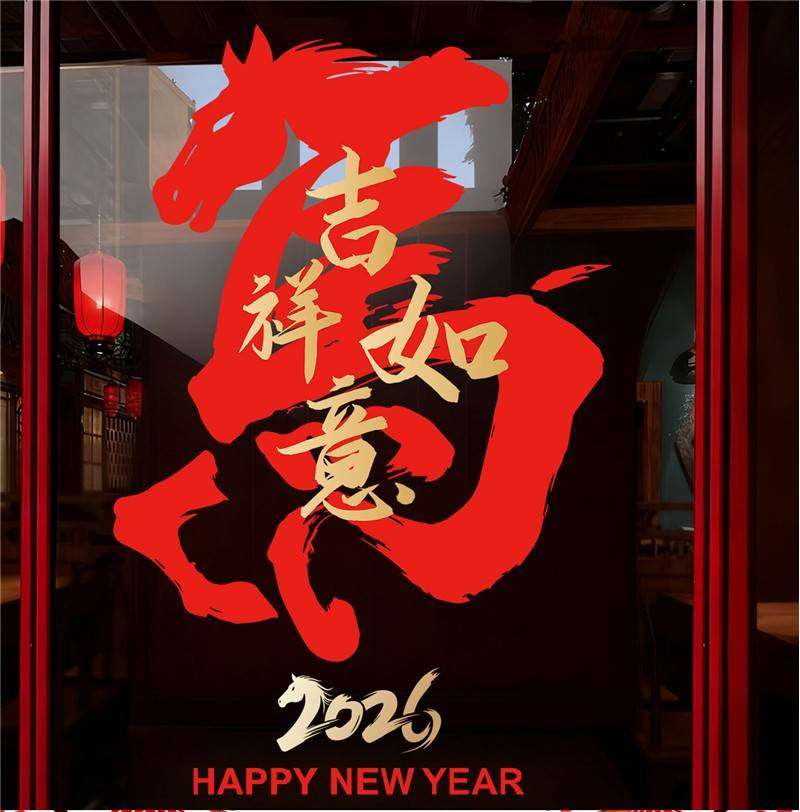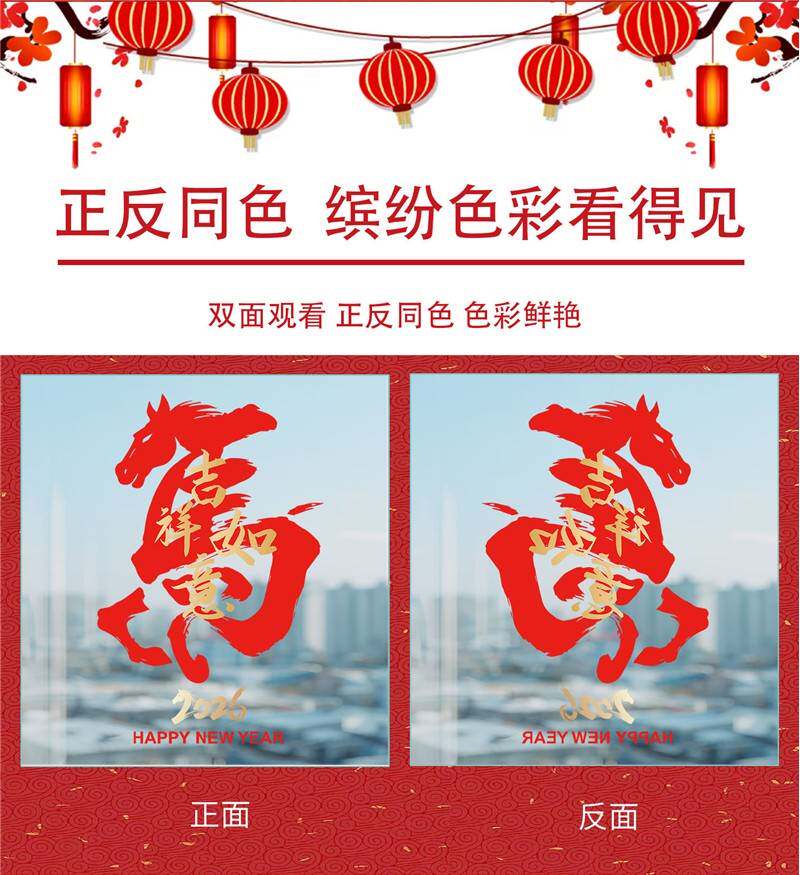 2026馬年窗花新年店鋪裝飾品玻璃貼畫高級感新中式國風靜電玻璃貼