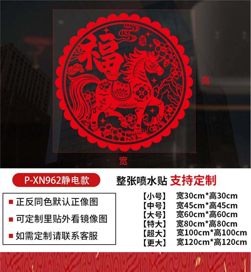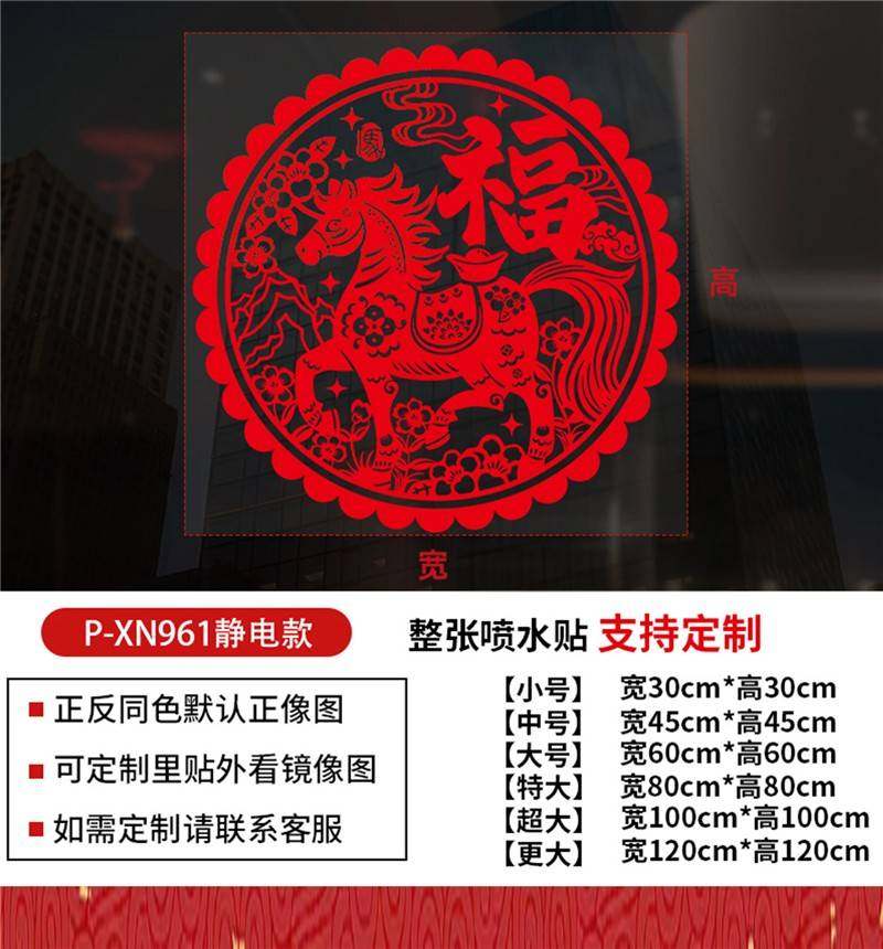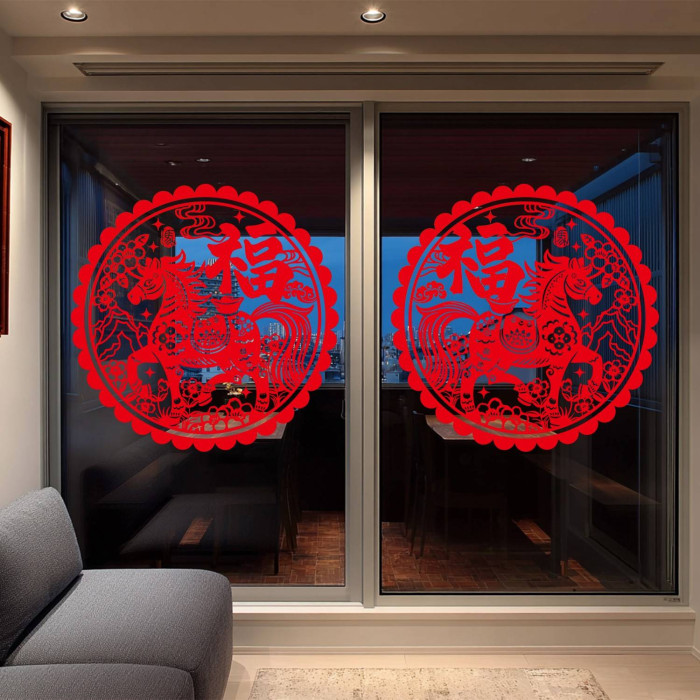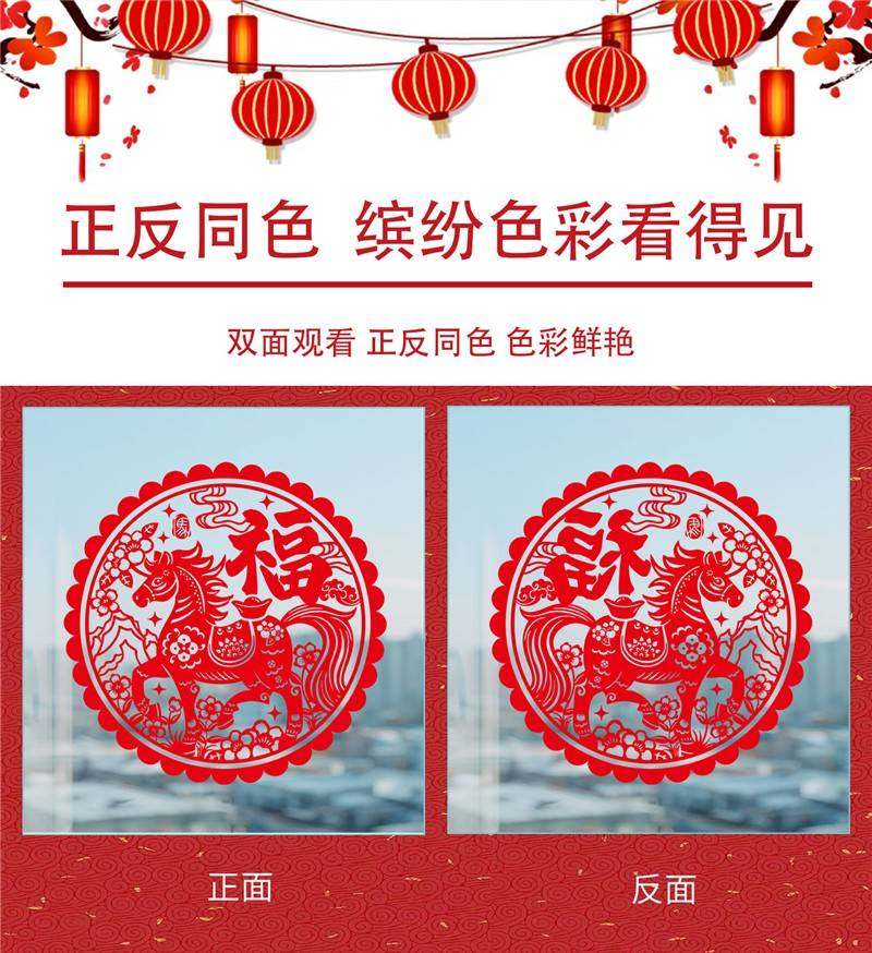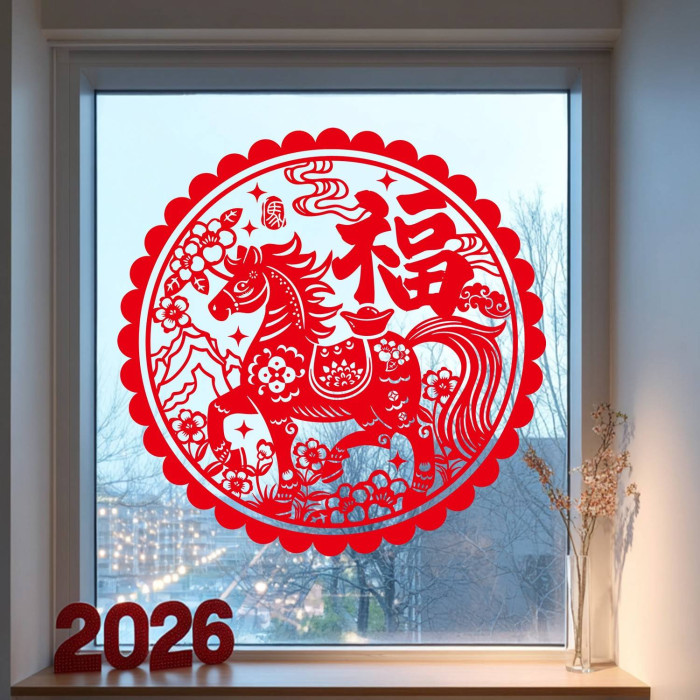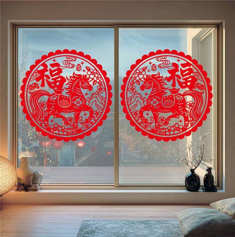 元旦氣氛裝飾2026馬年裝飾靜電貼新中式國風福字窗花玻璃貼紙